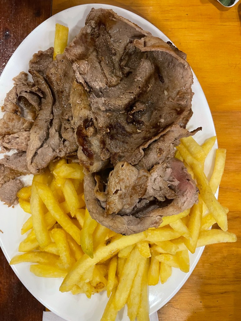 We started the tour around 10:30 AM and we weren’t off until close to 1 PM. It was really enjoyable and we got to see everything. When we got off we went to find a place for lunch. We found this great restaurant where it seemed like all the local business workers were eating so we chose it. We once again had some challenges ordering food due to the language barrier but we finally found a waiter that spoke English and were able to order. Kathy and I decided to get the “steak” but thought it would just be a thin cut of flank steak. They brought so much steak on each plate I had to take a picture of it! We couldn’t even eat half of it so we asked for a box and will give it to the sweet stray dog we met outside our hotel last night. After lunch we walked around and did a little shopping since there are street vendors EVERYWHERE in this city with really good deals! I found a couple nice hand stitched jackets for my grandkids that look like real authentic Chilean garb and Kathy found a cute top. Both were below $10! We also saw some kids in a band playing on the street for money and they were pretty good. We think they even had an oboe!