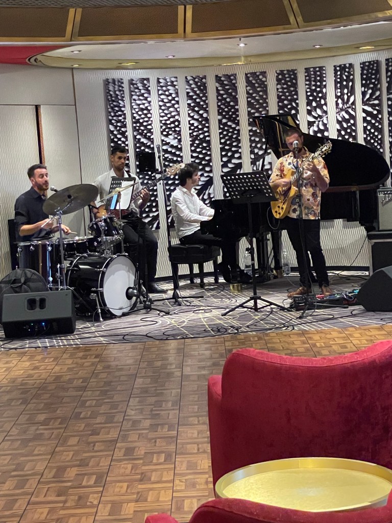 Posted on January 12, 2023 by Jeff DeMaria Sunset over the chess table! A huge indoor hot tub! The place we’ll spend a lot of time at… hot dog and burger stand! Cool Jazz Band! Classical pianist on the Main Stage! Dueling Piano Players! Share this: Click to share on X (Opens in new window) X Click to share on Facebook (Opens in new window) Facebook Like Loading...