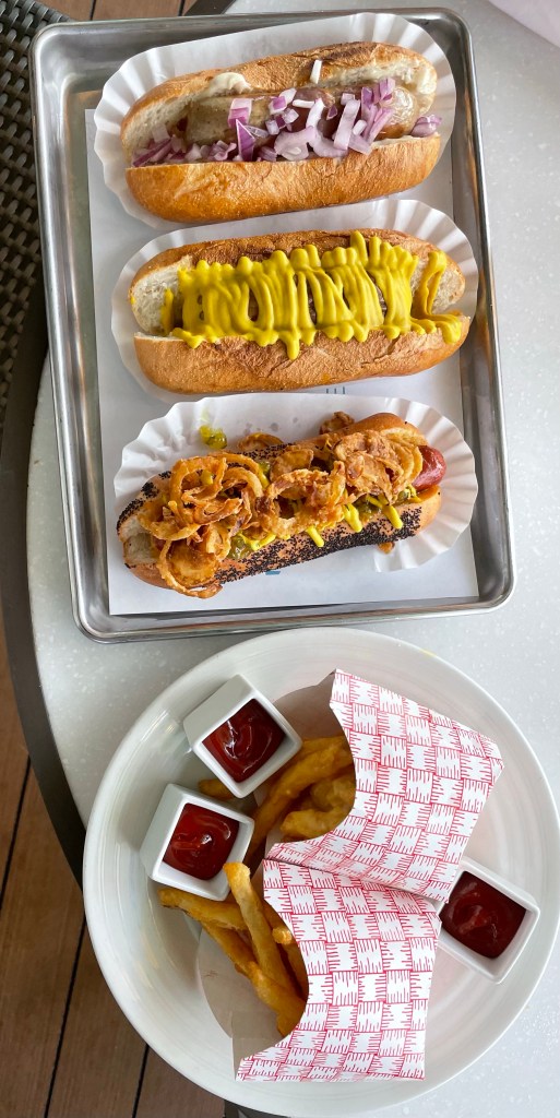 We decided to try the hot dog stand they have for lunch. And don’t think standard hot dog… these are gourmet dogs! They also have bratwurst and the French fries were really crispy. As you can see by the picture it was as yummy as it looked. We’ll start the diet tomorrow!