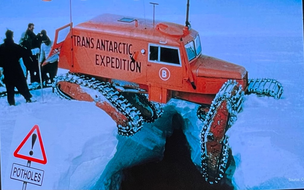 Love that they put the day of the week carpet in all the elevators! But then again, every day is Saturday on vacation! Speaker on the fjords!Speaker on Antarctica!USA’s Antarctica Research Station!They built a research station near a penguin colony! Even Antarctica has pot holes! But fortunately everyone survived this one!