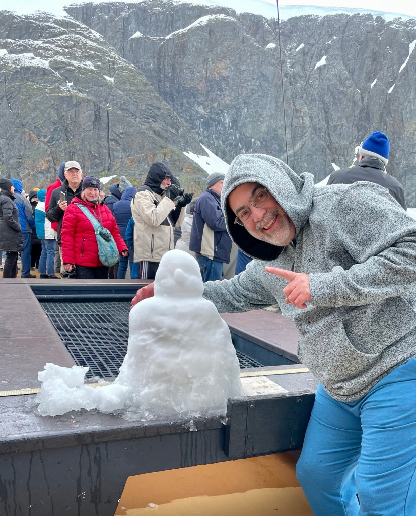 Posted on January 31, 2023 by Jeff DeMaria Workers sweeping SNOW off the Bow! Whale Tail! Penguins next to a Waterfall! So cool! Me with a “Penguin” Snowman! Share this: Click to share on X (Opens in new window) X Click to share on Facebook (Opens in new window) Facebook Like Loading...