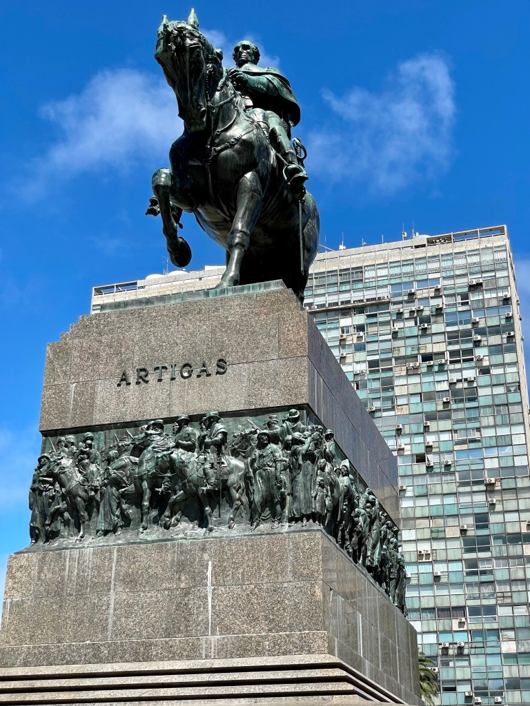 Kathy at a cool VW Van converted to a kiosk in the Farmer’s Market Building!In front of the art sculpture “La Caretta” that depicts the Gaucho (Cowboy) Pioneer!Entrance to the Mercado Agricola aka Farmer’s Market!General José Artigas – Liberator of Uruguay!