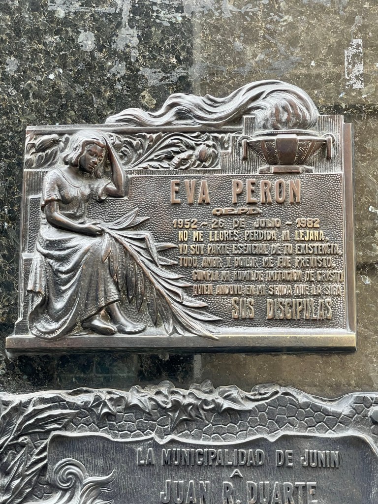 Posted on February 2, 2023 by Jeff DeMaria Wednesday Feb 1, 2023 Cruise ship following us in to Buenos Aires! Gravesite of Eva Peron (aka Evita – “Don’t cry for me Argentina”)! In Recoleta Cemetery touching the “lucky dog”! The Most Beautiful Bookstore in the World! Share this: Click to share on X (Opens in new window) X Click to share on Facebook (Opens in new window) Facebook Like Loading...
