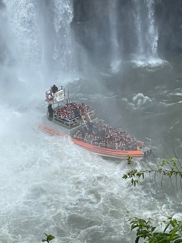 Posted on February 5, 2023 by Jeff DeMaria Friday Feb 3, 2023 Boat ride at Iguazu! After getting soaked at Iguazu Falls! What our boat ride looked like while getting pounded with water… Wild! What our boat would have looked like leaving the Falls! Share this: Click to share on X (Opens in new window) X Click to share on Facebook (Opens in new window) Facebook Like Loading...