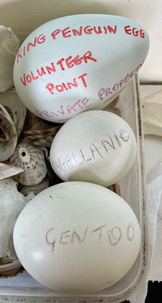 A baby Magellanic Penguin!An adult Magellanic Penguin!Different Penguin breed’s egg sizes!Hardin’ out for a swim!Hangin’ with their buddies!Penguins lounging on the beach!Sea Lion posing!Bust of Margaret Thatcher since she freed the Falklands!
