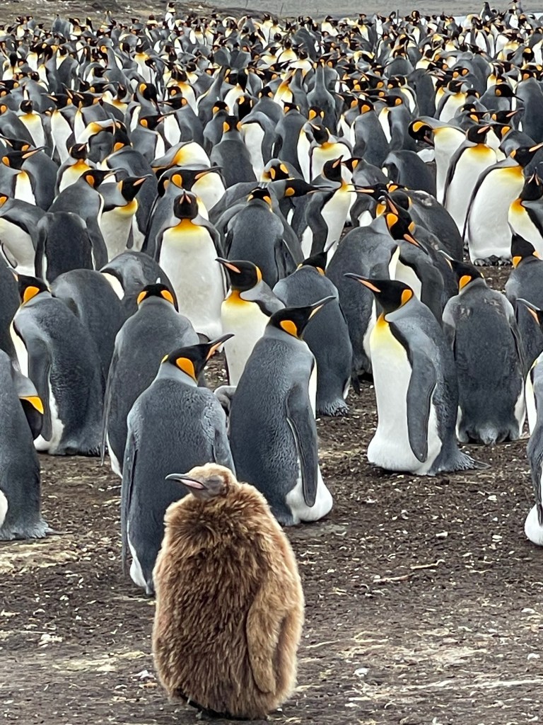 We made it to the Falklands!Just hanging with my King Penguin friends!Hundreds of Kings with the baby in front!They were coming for us!Why is he standing so close to me??Up close and personal with the King!Up close and personal with a Baby King!There were so many of them!