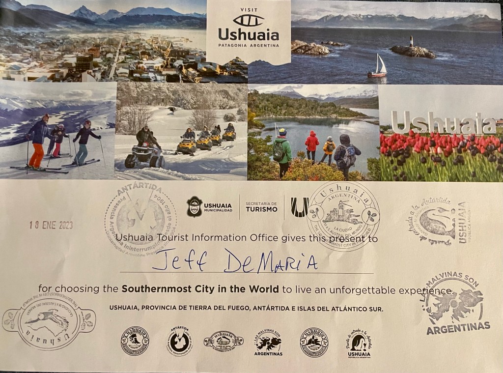 Sim of these were pictures that other people took and shared with everyone and I wanted to post them since they were really good! I also have pics of our itinerary and “awards” for going that far South! Lol