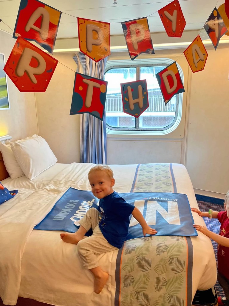 Kye was especially spoiled (as he should be!) with the waiters at dinner bringing him a birthday cake each night and singing happy birthday to him. I also had his room decorated with happy birthday signs and streamers. But he was most excited about the happy birthday medallion he could wear around his neck and wore that proudly everywhere!