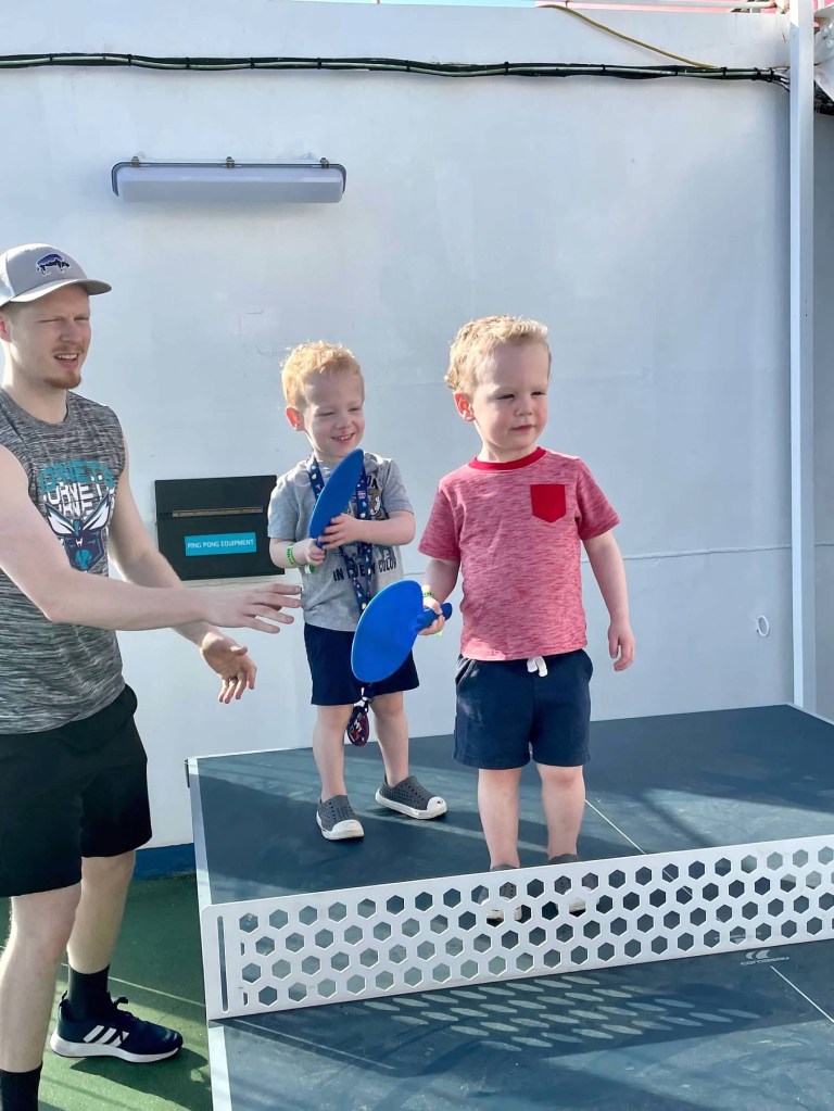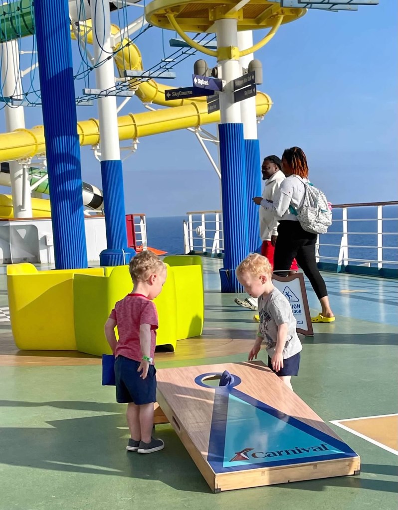 The boys were amazed at how big the ship was (wish I could post the video I have of their faces as we walked up the ramp to the ship!), how much food there was (especially the endless watermelon!), and playing with all the other kids at the kids club. They even got in some basketball, ping ping and cornhole!