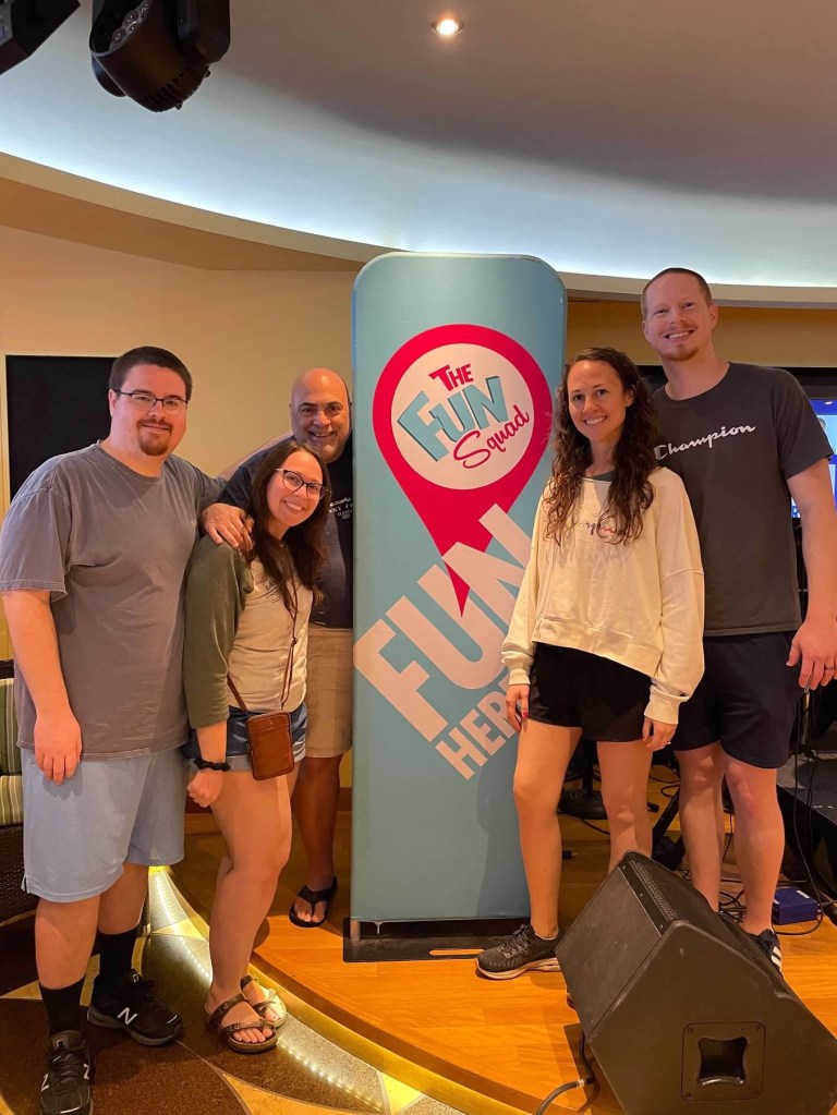 I actually took all of my kids too (can’t forget them!) so it was a very cool family get together. We took the Carnival Sunshine ship out of Charleston which was easy to drive to (except for Jen!) and a fun ship with lots of cool features. Yes, we were frequent takers of Guy Fieri’s burgers!