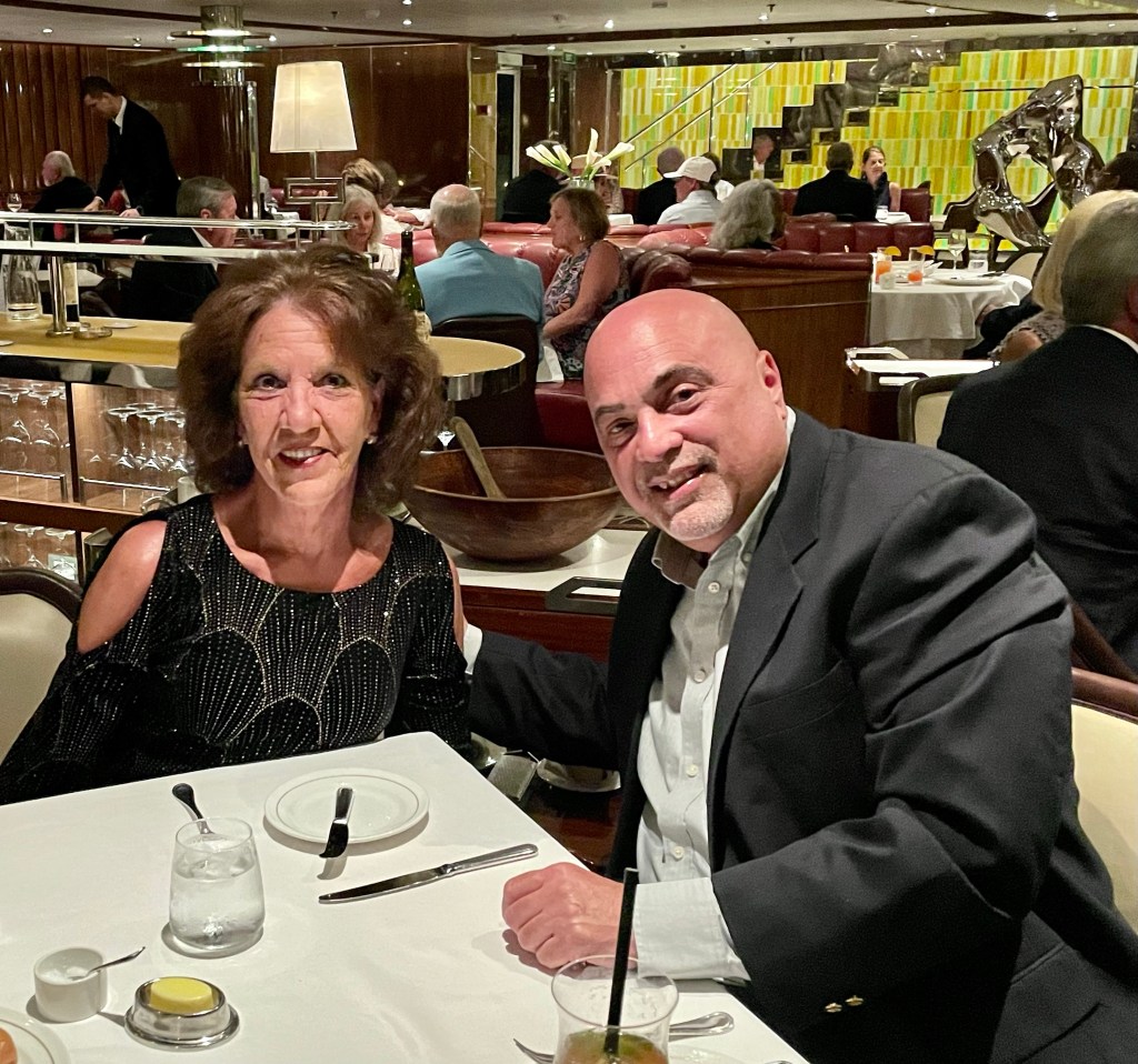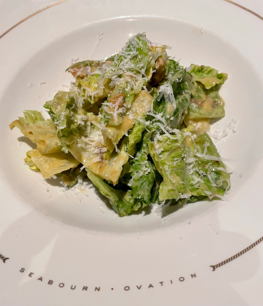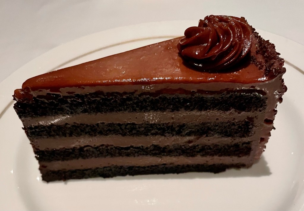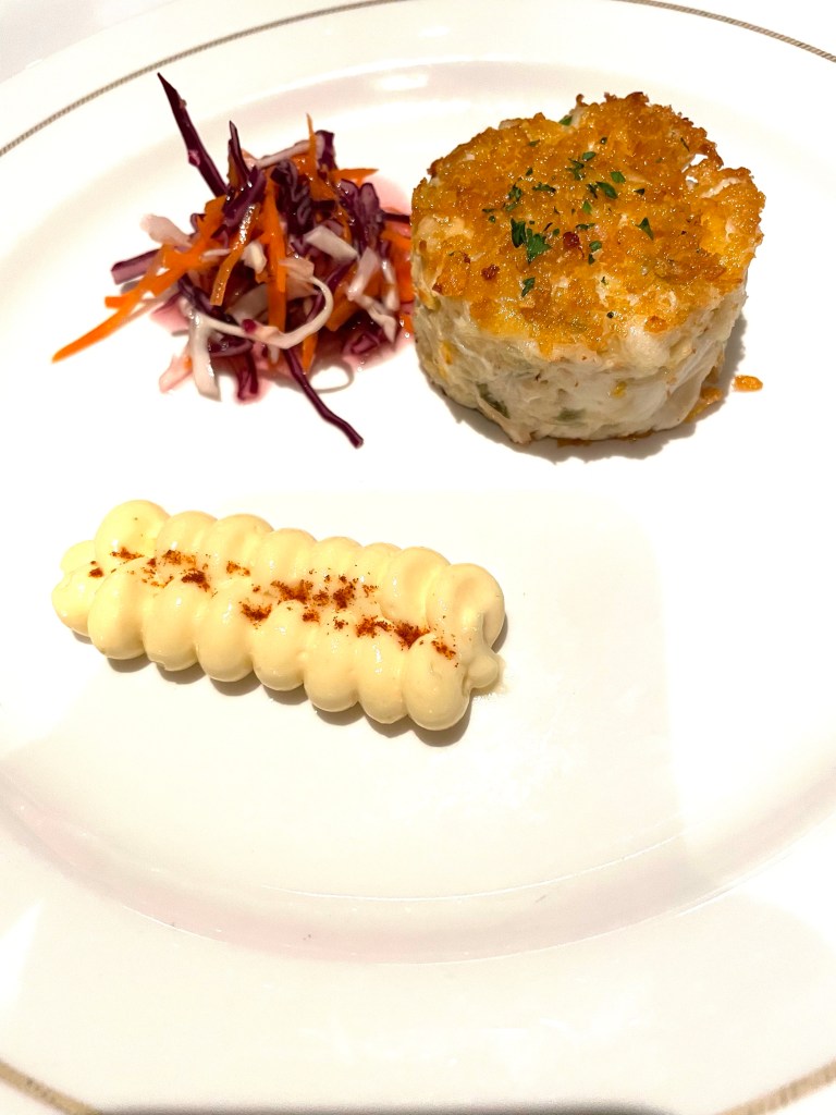 Us at The Thomas Keller Grill for Dinner!Dinner Menu – Page 1!Dinner Menu – Page 2!Starter of veggies and dip with cheese sticks!Caesar Salad prepared table side!Jumbo Lump Crab Cake with Spicy Aioli!Thick-cut Prime New York Strip Steak for Two!Prime New York Strip Steak Sliced!Sides of Lobster Thermidor, Sautéed Mushrooms, and Glazed Carrots!Dark Chocolate Layer Cake!
