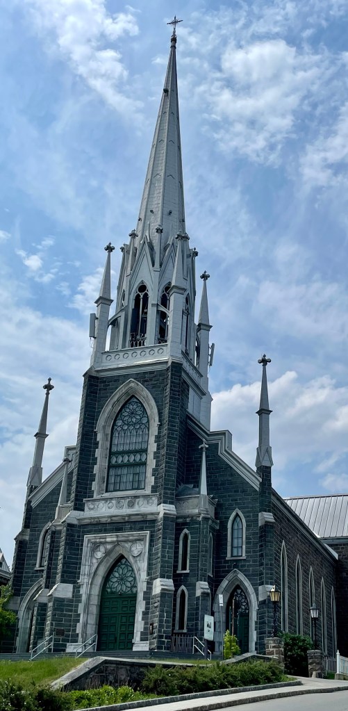 In the afternoon we just chilled on the balcony and admired the scenery as we floated thru the fjords. They announced we’d be passing by the Our Lady of Saguenay statue. Legend has it that a man trying to cross the Saguenay River fell thru the ice and pleaded with the Virgin Mary to save his life. He was saved and erected a statue of the Virgin Mary to thank her for saving his life. We saw it with the binoculars Regent has in the room (nice touch!) but we couldn’t quite figure out how he got it up on that fjord!