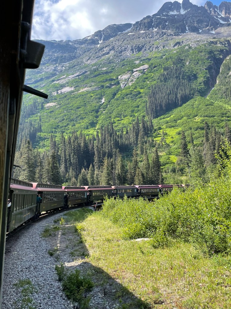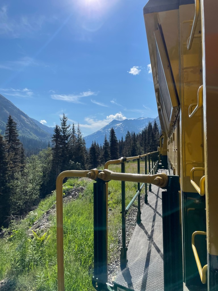 On the railroad we got to sit in the first car and so we spent a lot of the trip on the front platform of the train as it headed up to the peak. The views were incredible. We also were the only railcar that had its own private tour guide named Runaway Jim and he was hilarious. He told lots of funny stories and shared lots of history. Before the railroad was put in, during the gold rush, men would have to put tons of food and utensils on their backs and climb up the mountain to get the chance to mine for gold. Crazy!