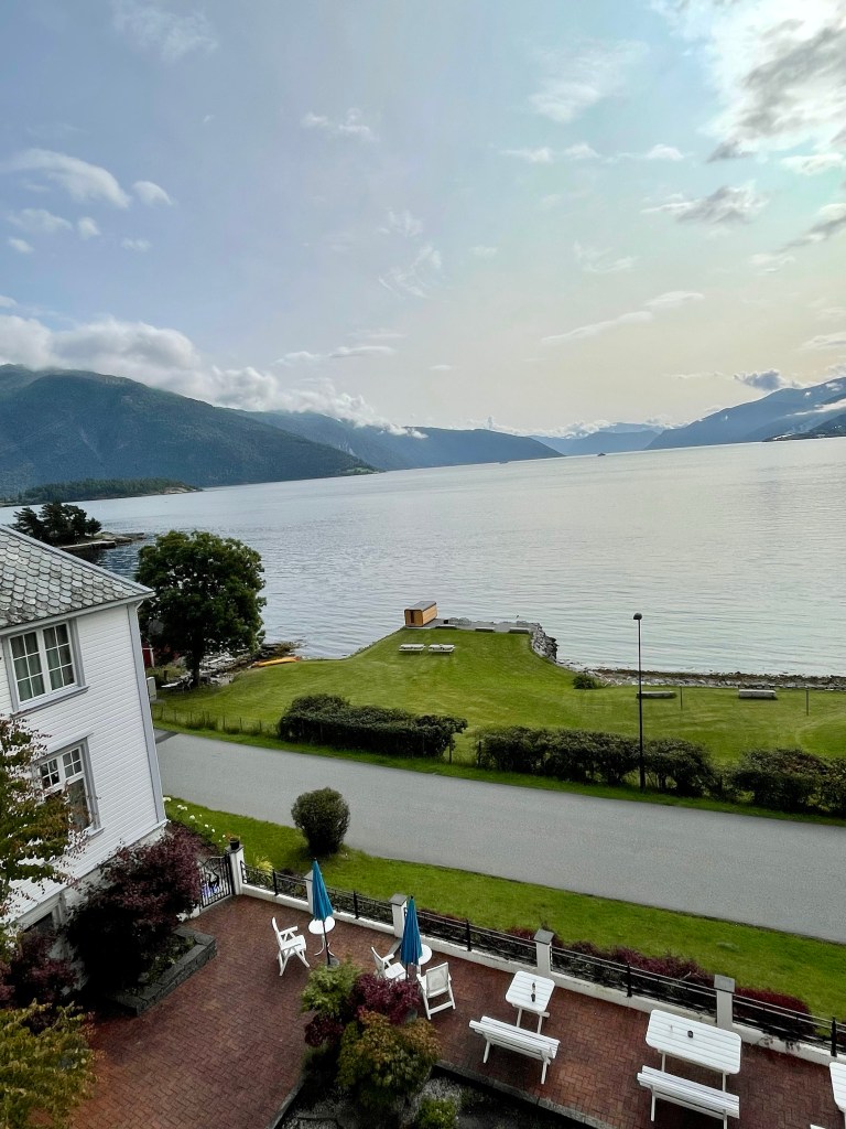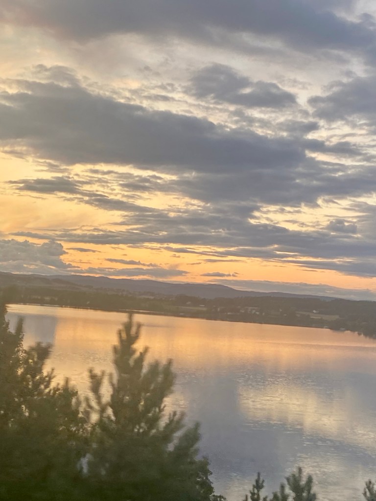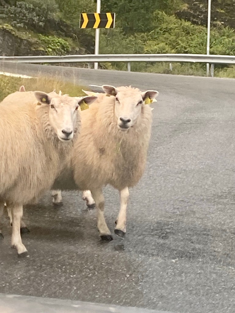 What we woke up to in Balestrand!Waiting on the Pier in Balestrand for our Ferry to Flam!Beautiful Sunset on our Bus Ride to Oslo!Two Sheep we saw Yesterday While Driving Around – We Named them Kathy and Jeff!The Polar Bears Rahul Saw – We Just Missed Them by a Few Days! Bummer!!