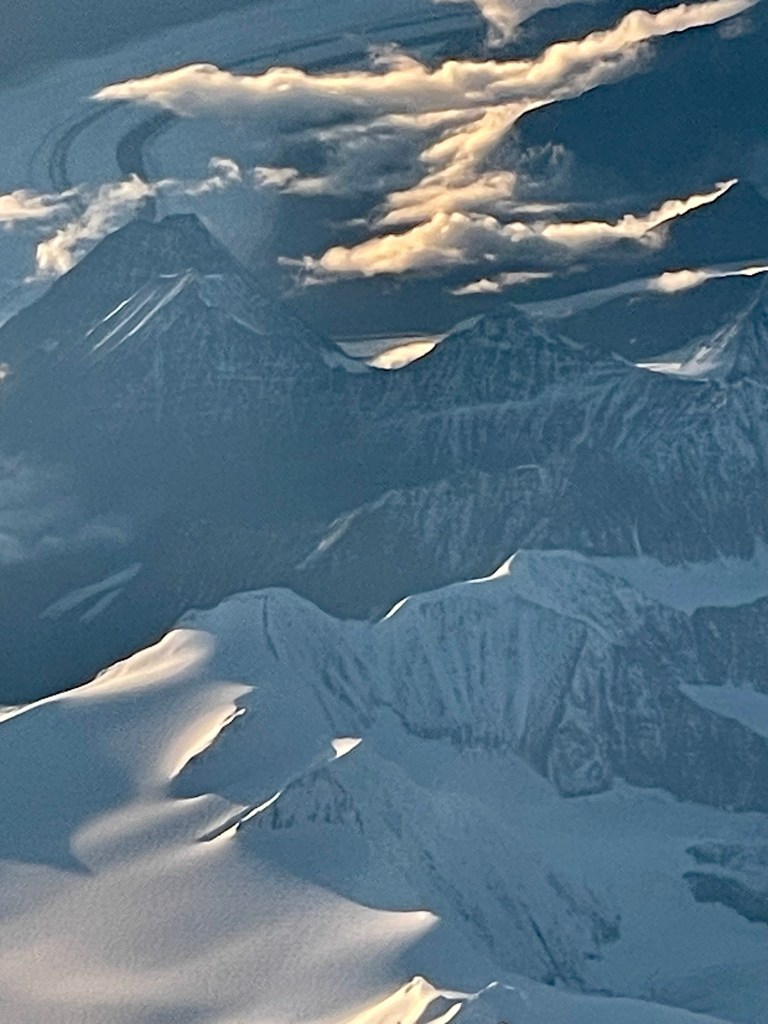 PS: I’ve been to Alaska many times but always sailed north on a cruise ship from Seattle or Vancouver. I’ve never flown over the state. The beauty and majesty of the snow capped mountains and glaciers was breathtaking. The attached pictures are what draw me back to Alaska!