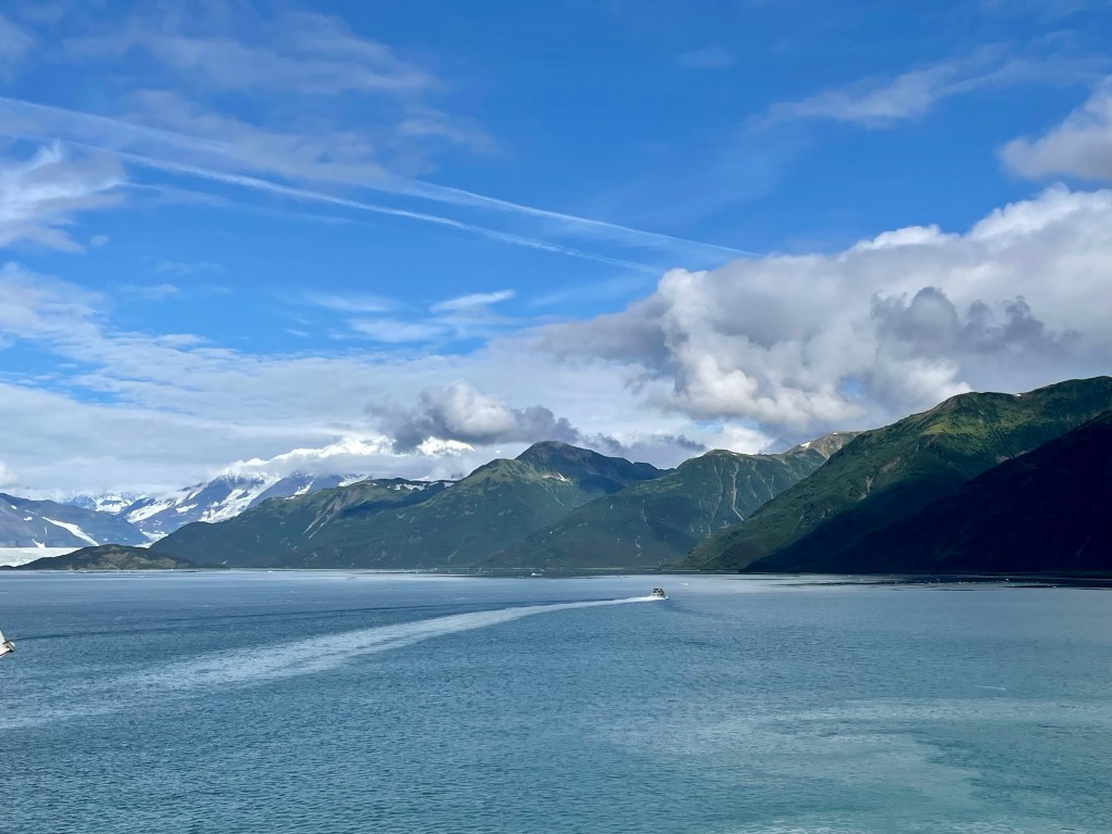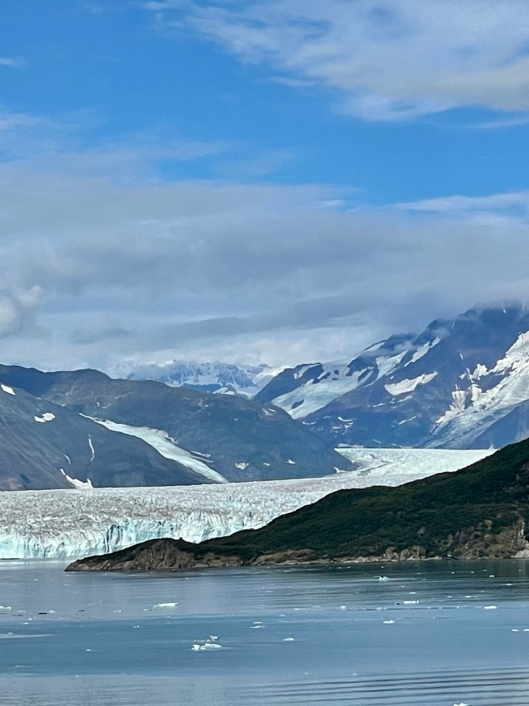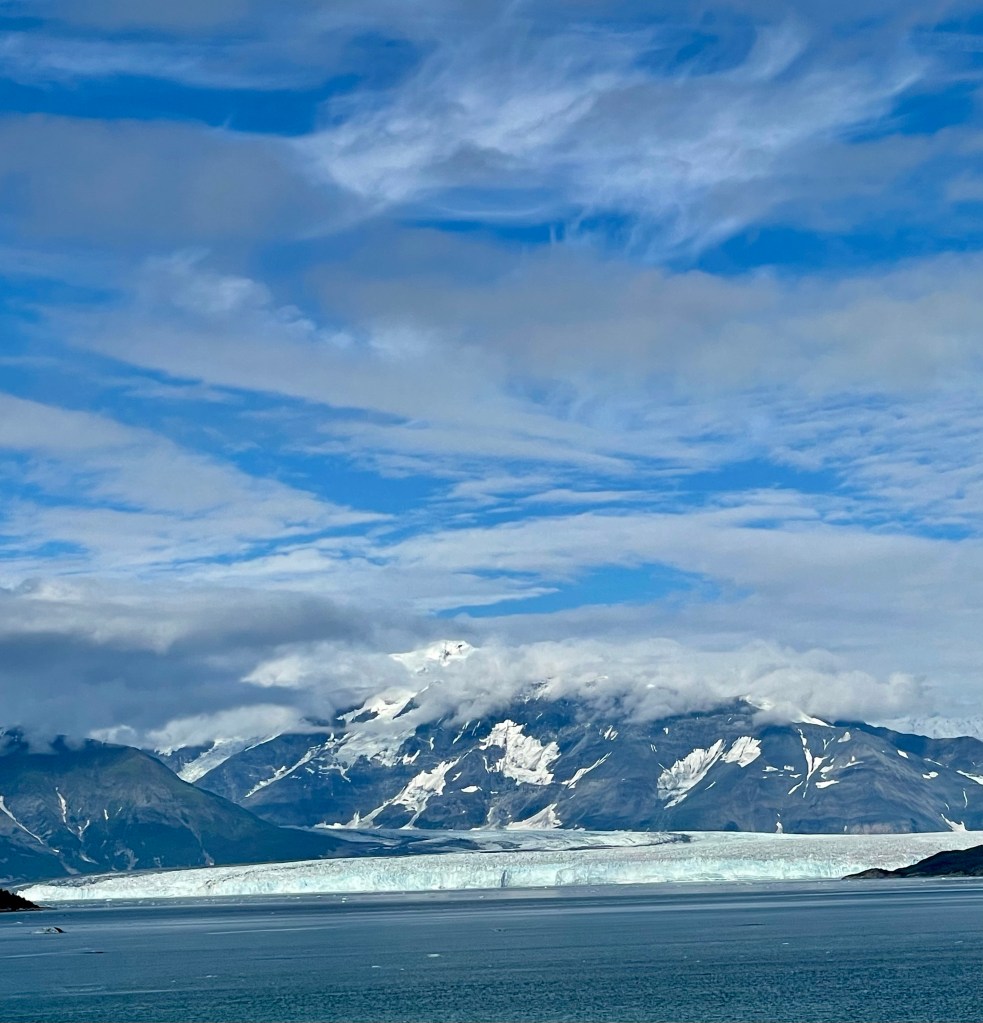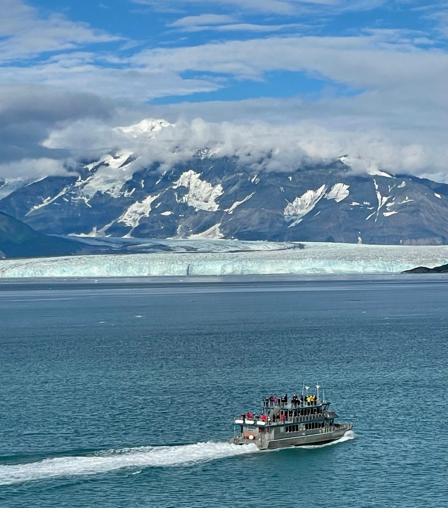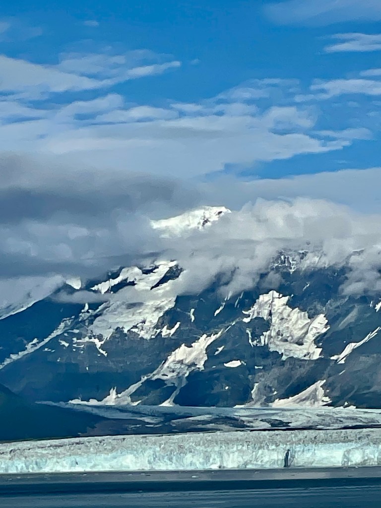 Had a nice lunch and then the second half of the day felt more like an excursion day since we arrived at Hubbard Glacier and got to view it in all her majesty. Right before we got there, the skies cleared, the sun came out and it turned into a beautiful day to see the glacier!