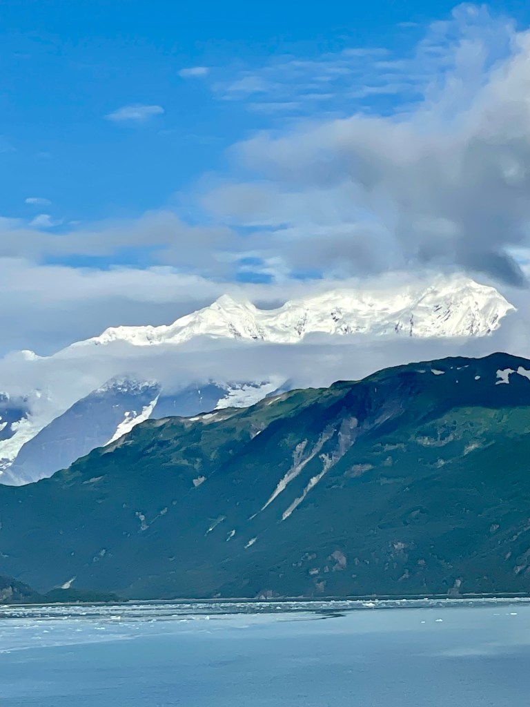 You may remember this from our last Alaska cruise but Hubbard Glacier is 6.2 miles wide which makes it the largest tidewater glacier in the world! The ship got way closer to the glacier than I thought she would and did a 360 to allow everyone to take pictures and take in the beauty. We got so close we got to sea and hear the calving of the glacier into the sea. There is just something magical about looking at packed down snow formed into glaciers from thousands of years ago. Really puts life in perspective.