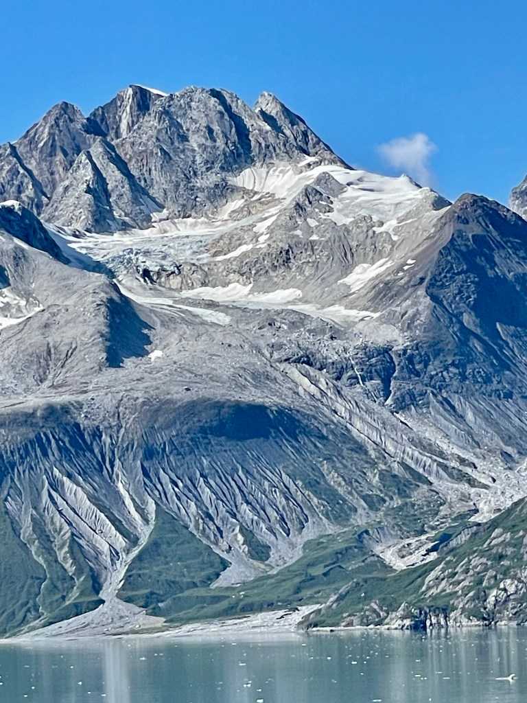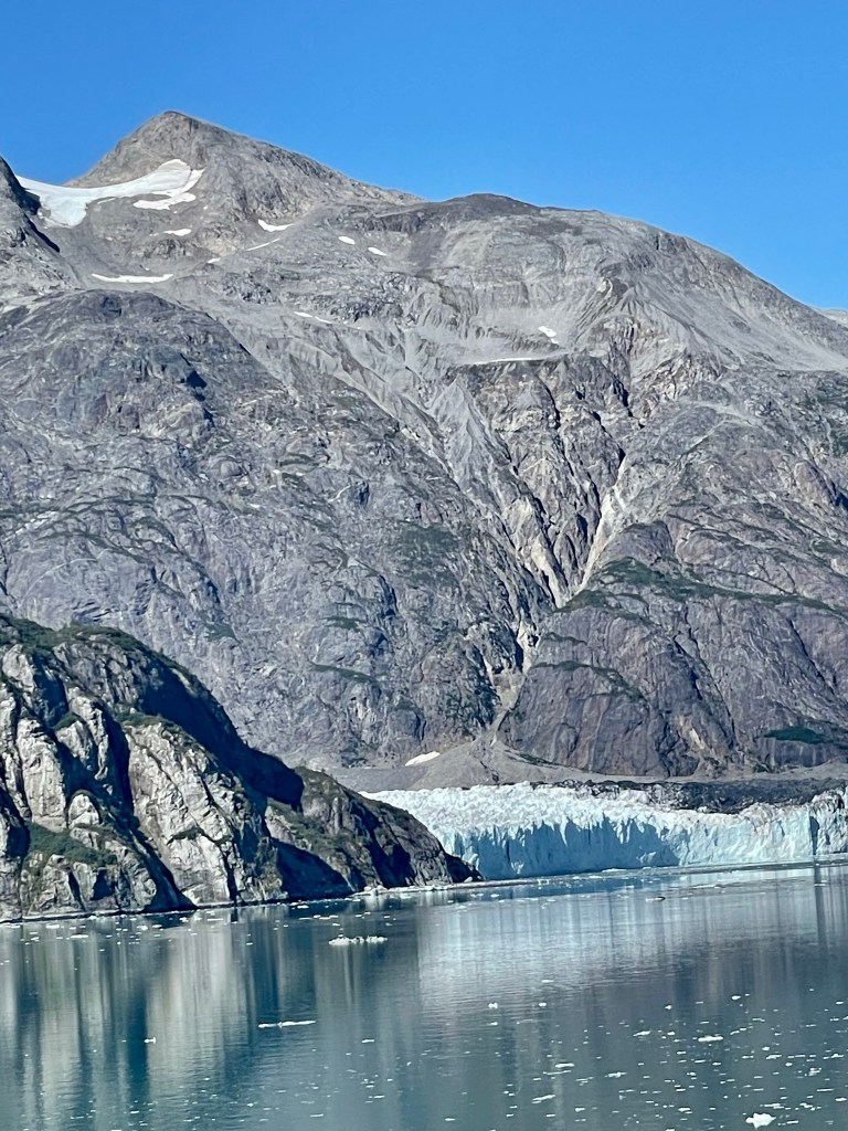 Glacier Bay National Park has to be one of the most beautiful parks but it is also one of the most remote. You can only get to it via cruise ship, only two cruise ships are allowed in per day and the leg we sailed into to see the Johns Hopkins glacier only allows ships in during the month of September. Couple all that with a clear blue sky with very few clouds and you realize how blessed we all were to see this majestic place.