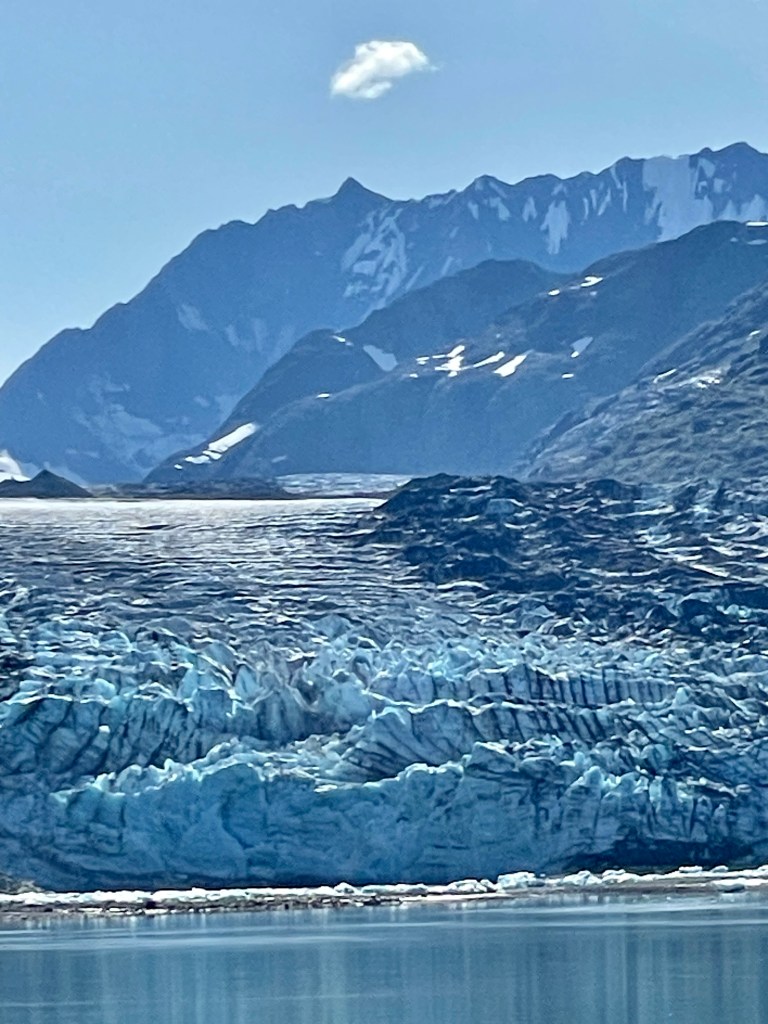 It has over a thousand glaciers in it but many are up in the high mountains and can’t be seen. We saw the six major tidewater glaciers that end at the sea and they were all breathtaking. It was chilly out on the deck watching all the scenery so Holland America had a nice touch where they handed out hot split pea and ham soup on the deck. Mmm… mmm good!