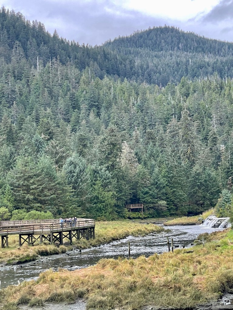 Also like yesterday, I cut a deal with the folks on the pier for this excursion out to Herring Point where there is “potential” for seeing bear since the salmon run there. It also stopped in town at the “salmon ladder” where salmon swim upstream to lay their eggs. That was pretty wild seeing those salmon fighting to get up that creek of rushing water. A great philosopher (OK, my good buddy Andy!) once said, “Persistence Overcomes Resistance”, and those salmon sure are persistent!