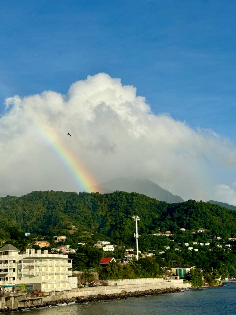 Posted on December 18, 2023 by Jeff DeMaria Obligatory Tourist Photo (with ship in background)! Two Waterfalls, a Rain Forest and a Rainbow! A Rainbow as we left Dominica! Us at Dinner! A Lasagne Appetizer! Sea Bass! Share this: Click to share on X (Opens in new window) X Click to share on Facebook (Opens in new window) Facebook Like Loading...