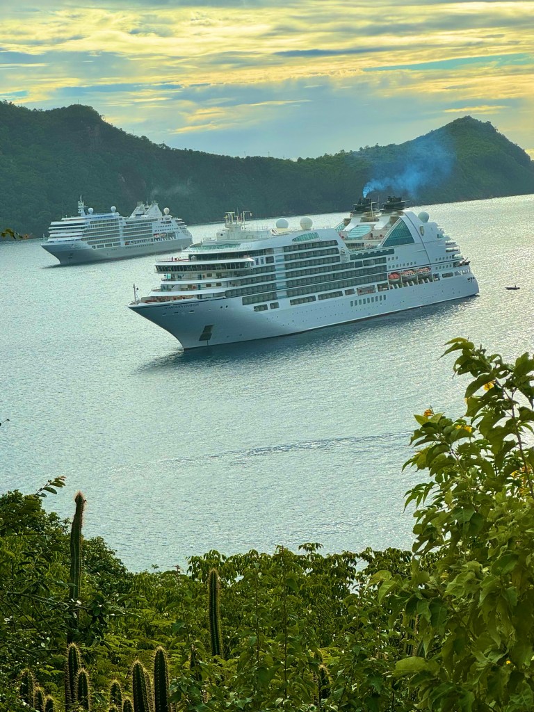 Posted on December 19, 2023 by Jeff DeMaria Our Ship in Back and Seabourn Ovation in Front! Obligatory Tourist Photo! Us at Dinner! King Crab, Watermelon and Caviar! Glazed Duck! Hazelnut Chocolate Cheese Cake! Share this: Click to share on X (Opens in new window) X Click to share on Facebook (Opens in new window) Facebook Like Loading...
