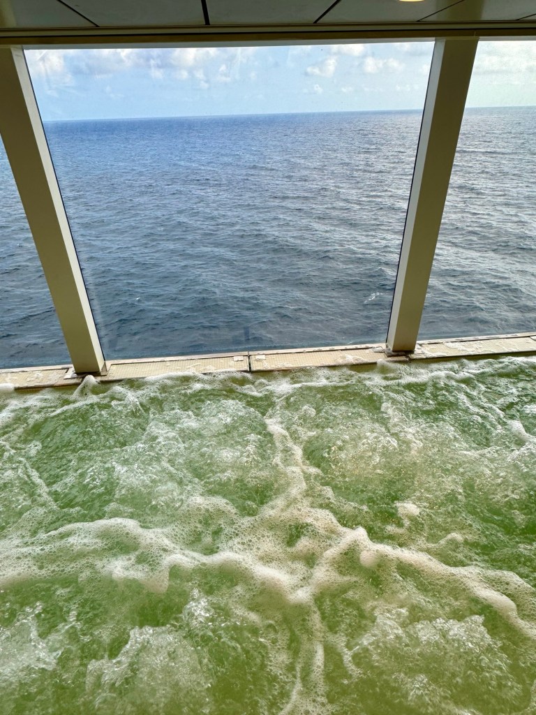 Today was a nice relaxing sea day but we did a lot of fun stuff. I let Kathy sleep in and went down to the indoor whirlpool/sauna that looks out over the ocean. That really put me in what Explora likes to call the “Ocean State of Mind”!
