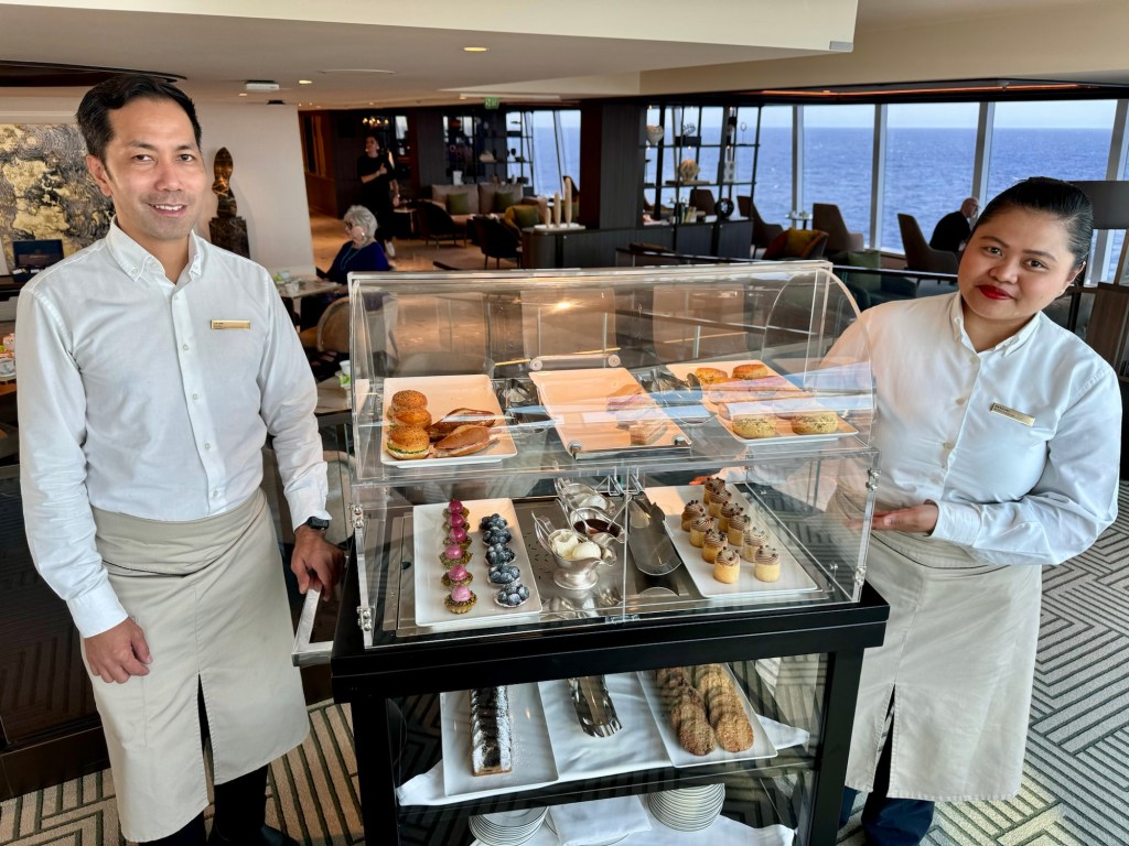 We had lunch, which was amazing again and then Kathy did a little sunning (yes, it was sunny and 80 degrees here – sorry for you snowbirds!) and I did a little chillin’. Then we went to listen to another guest speaker talk about the islands of the Caribbean in both their geological formation as well as their human evolution. Did you know that 25 million visitors (half from the US) visited here last year? Crazy! And we even snuck in afternoon tea service and all its goodies!