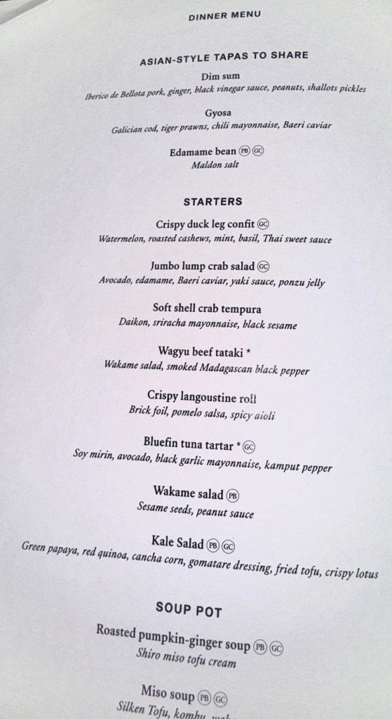 After getting cleaned up we went to dinner at Sakura, the Pan-Asian restaurant. The name is the National flower of Japan, the cherry blossom, and they were all around the restaurant. The food was probably one of the best cruise restaurants we’ve gone to. We both got this amazing lobster roll (of course!), several other appetizers, the Miso cod and some yummy scallops. And who would have thought the Asian restaurant would have the best chocolate dessert!