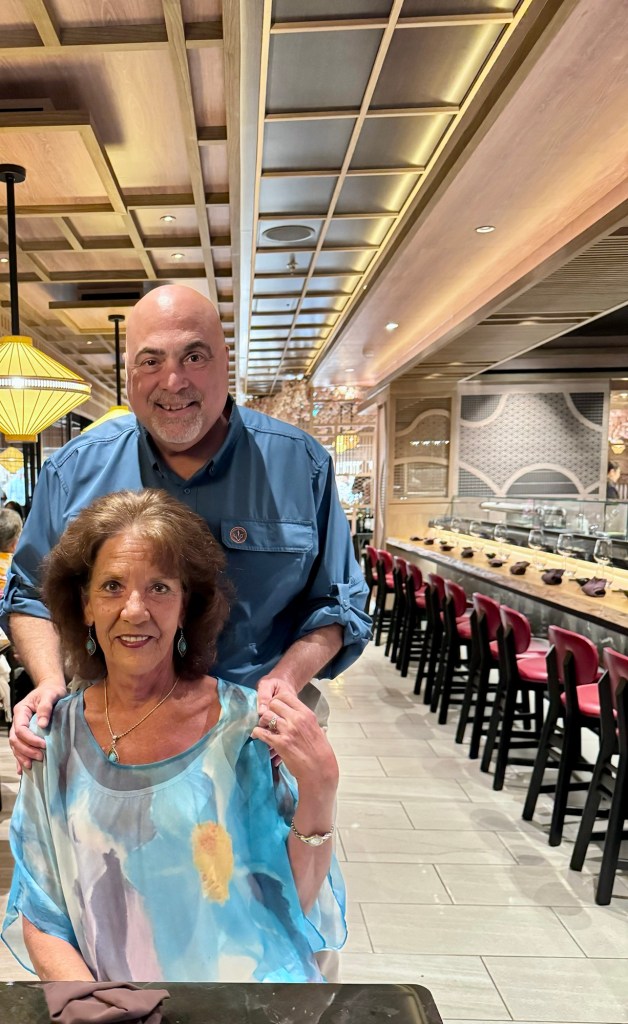 We had dinner at our favorite restaurant on the ship, the Pan-Asian one named Sakura. We both got the lobster rolls (of course!) and also both got the lobster Pad Thai (of course!). So anyone know the long term affect of eating too much lobster?? If so, don’t tell us! Lol