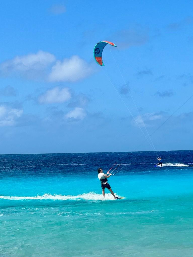 We had so much fun today! We rented a golf cart and drove around the whole island. We saw so much and like yesterday, I’m going to let the amazing pictures do the talking. But for a quick summary we saw a Donkey Sanctuary (with a 10 week old cute donkey!), flamingos, turtles, iguanas, kite boarders, wind surfers, crashing waves, a cactus fence, a light house, salt mines, slave huts (very sad), a beach bar, amazing beaches and lots and lots of crystal clear blue waters with all shades of blue!