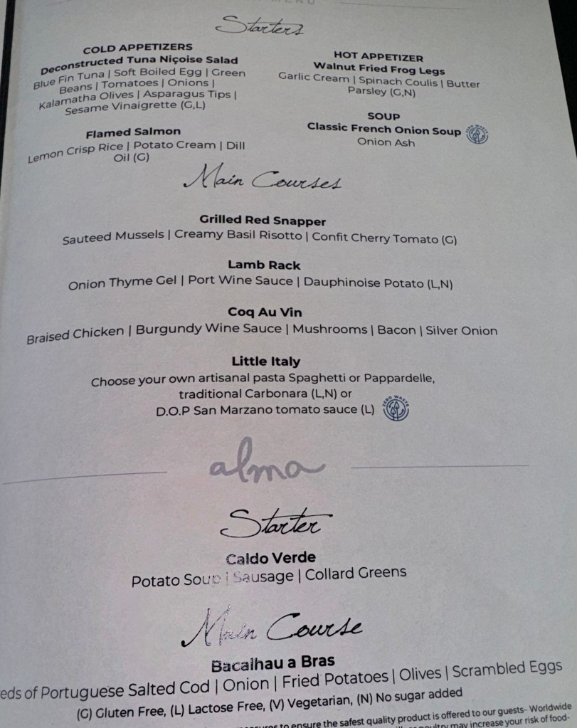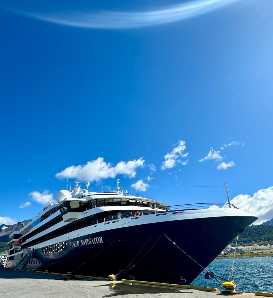 Posted on February 6, 2024 by Jeff DeMaria Ushuaia! Heated Bench for Watching Whales! The Dome Lounge for Music Nightly! World Navigator Docked in Ushuaia! Dinner Menu – Page 1! Dinner Menu – Page 2! Red Snapper with Mussels & Risotto! Share this: Click to share on X (Opens in new window) X Click to share on Facebook (Opens in new window) Facebook Like Loading...