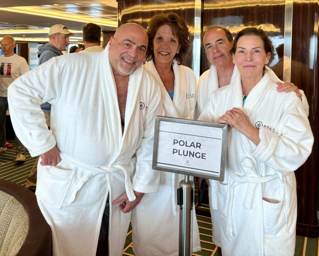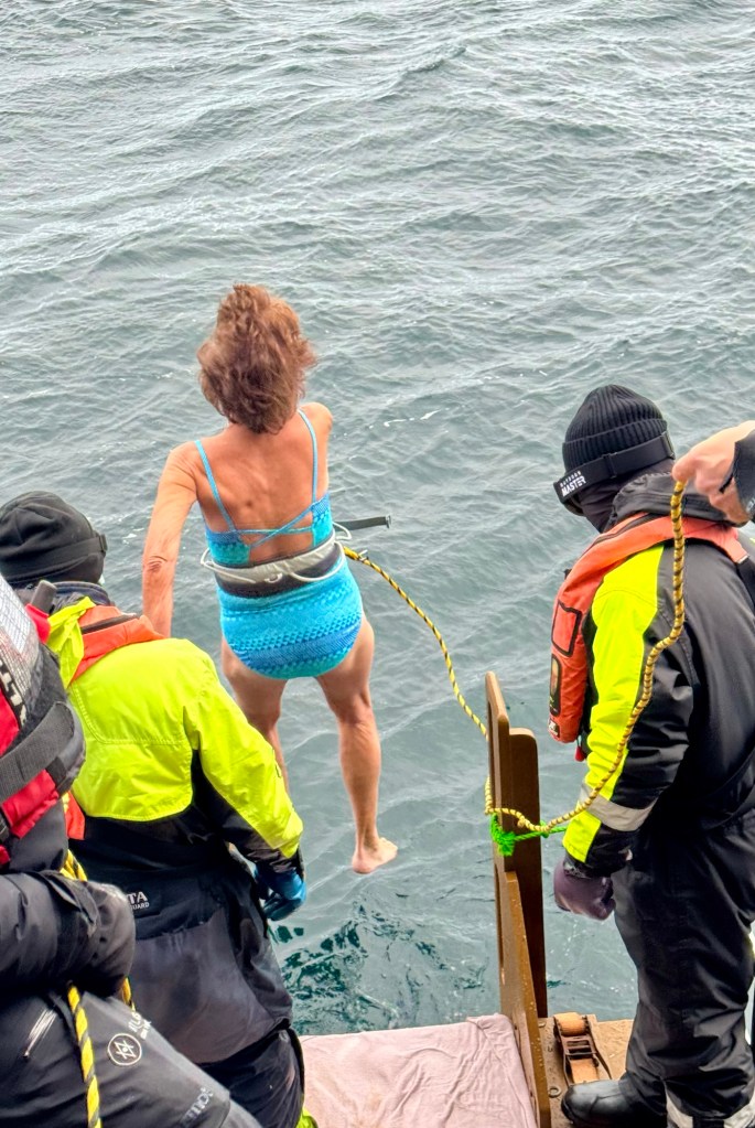 Hi All! Today was an amazing day! I’m just going to write a little and finish tomorrow. Today we saw leopard seals, weddell seals, penguins and a minke whale! And we both did the polar plunge!! Stayed up way too late ringing in the Chinese New Year (the Year of the Dragon) since there are about 70 Asians on our voyage and the ship wanted to do something special for their new year’s celebration. Thought that was really cool. Our dinner menu also had special Chinese food offerings. All in all a great day. More to come tomorrow!