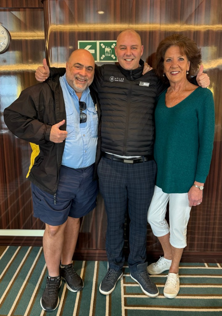 One of the cool things about being in the Ushuaia port that day was that all 3 Atlas ships were in port (Traveller, Navigator and Voyager). As you may remember, we took the Traveller to the Arctic last summer and so several of the crew stopped over to see their friends on the Navigator. We got to see Simon our cruise director from the Arctic and took a picture with him. We also saw Malcolm and Selby from the Arctic expedition team. It felt like old home week. That’s one of the many things we like about Atlas, the crew feels like family!