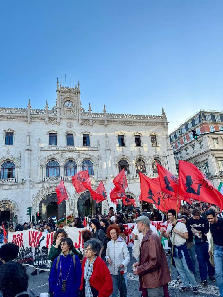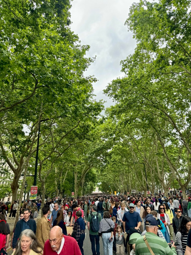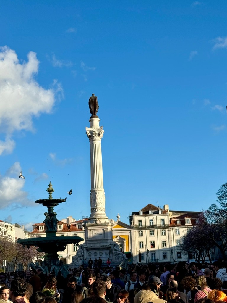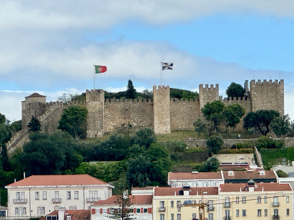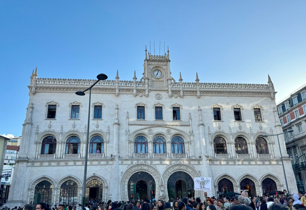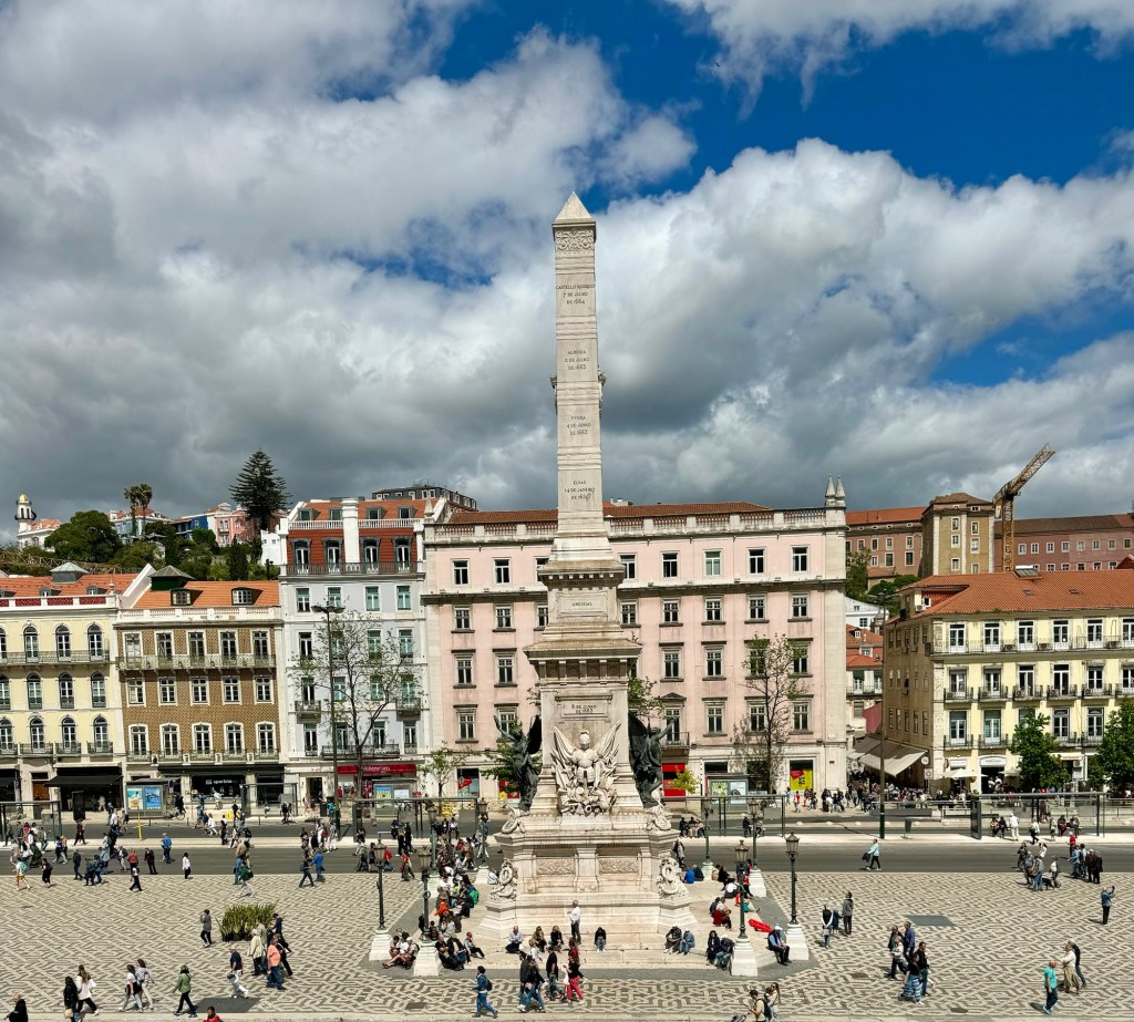 Our Amazing Itinerary!View from our Hotel Room to Praca dos Restauradores!Our Hotel Rooftop Pool Looking Towards the Cruise Port!View from our Hotel to Sao Jorge Castle!Throngs of People in the Streets!Main Square near our Hotel!1900 Facade of the Train Station with the Two Horseshoe Archways!More Marchers!Kathy Sitting in the Official Lisbon Sardine Chair!