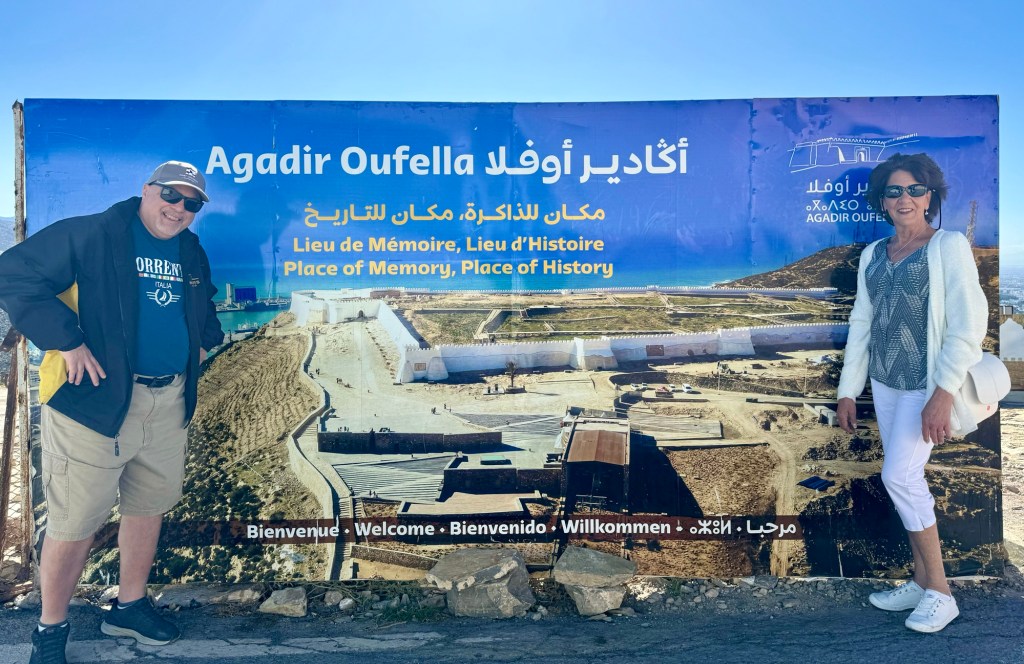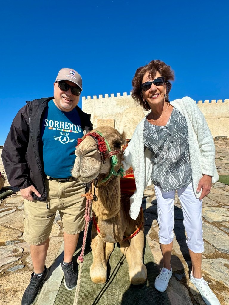 Hi Folks! We made it to Africa! Well, the country of Morocco on the continent of Africa and specifically to the city of Agadir. And Kathy crossed two things off her bucket list! She made it to her 6th continent (I need to get her to Australia for her to reach all 7 continents!) and she rode a camel! Well really a dromedary since they have one hump and camels have two. Who knew??