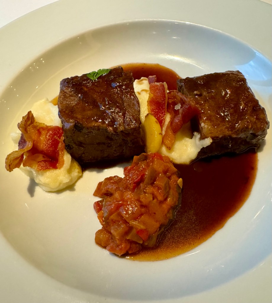 For our mains we both got the beef short ribs. They were cooked perfectly and fell apart when you cut them. And we both did the chocolate and peanut butter mousse for dessert. So yummy!