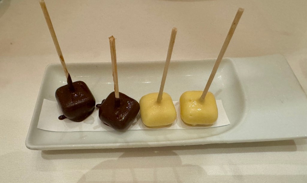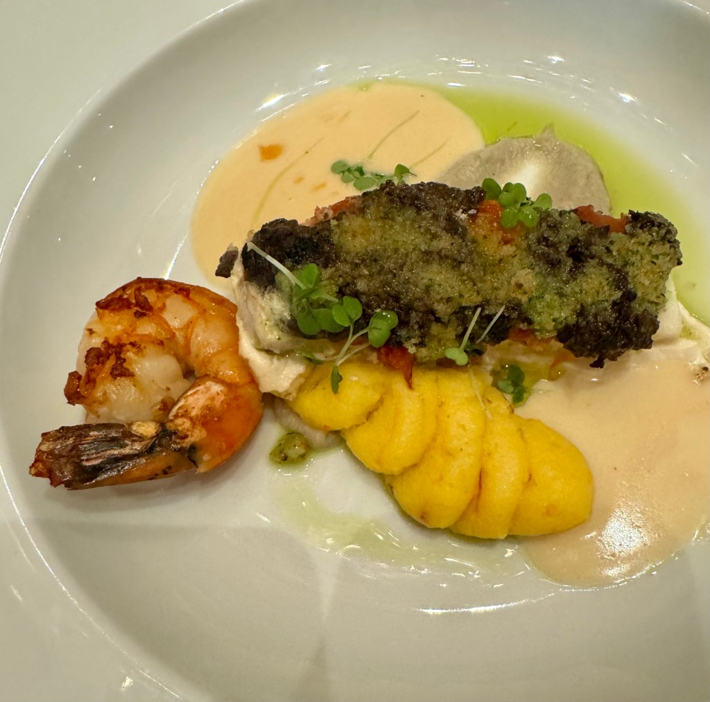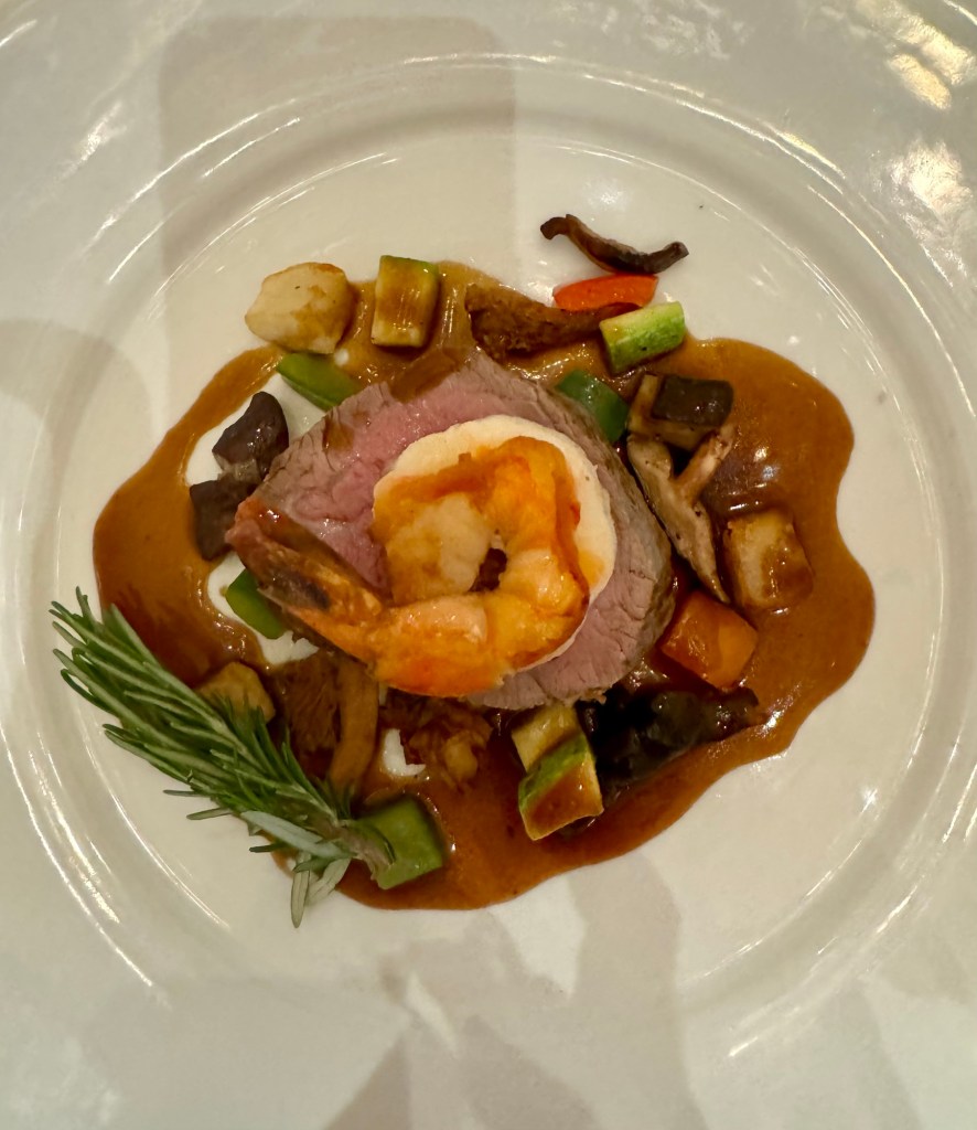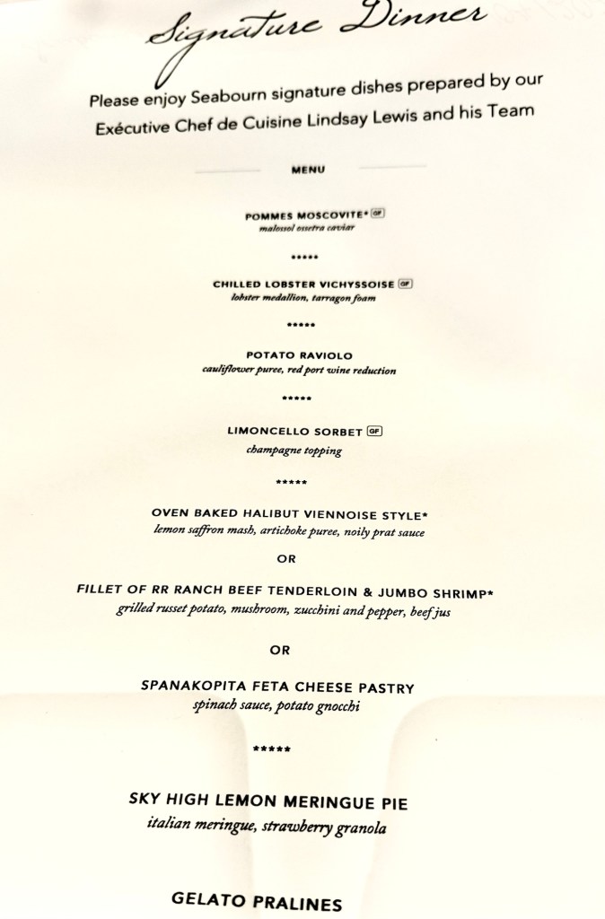 Later we had what they called “The Captains Dinner” where there was a set menu (on a scroll none the less, LAH-TEE-DAH again!) and it was all very tasty. After dinner we went to the show to listen to the Seabourn singers do the music from the Rat Pack (Frank Sinatra, Dean Martin, Bobby Darin, etc.). Great old classics!