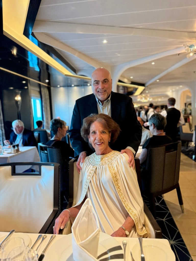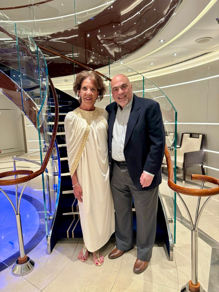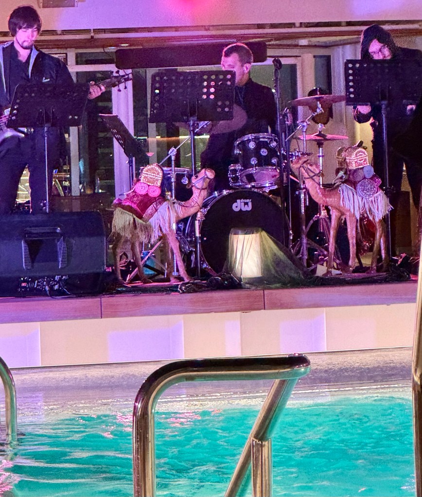 They didn’t have a real show tonight but instead they had a Moroccan Dance Party around the pool. So Kathy bought this beautiful Moroccan dress in the souk in Tangier that made her look like Cleopatra! Everybody commented on how beautiful she looked. Am I a lucky guy or what?