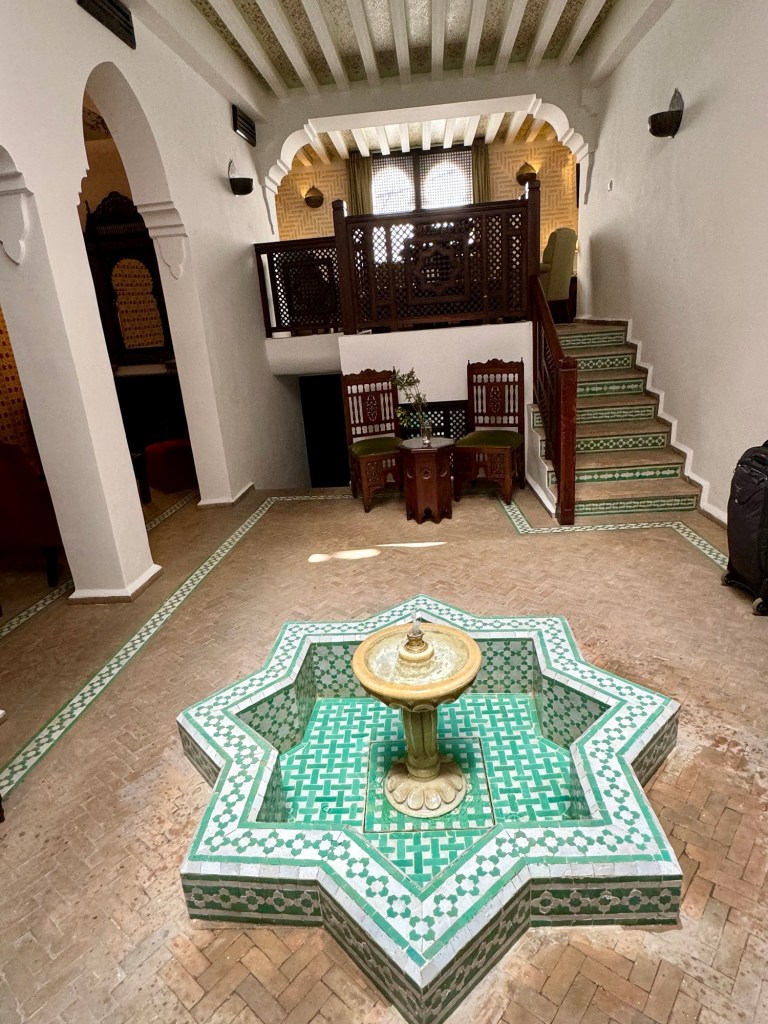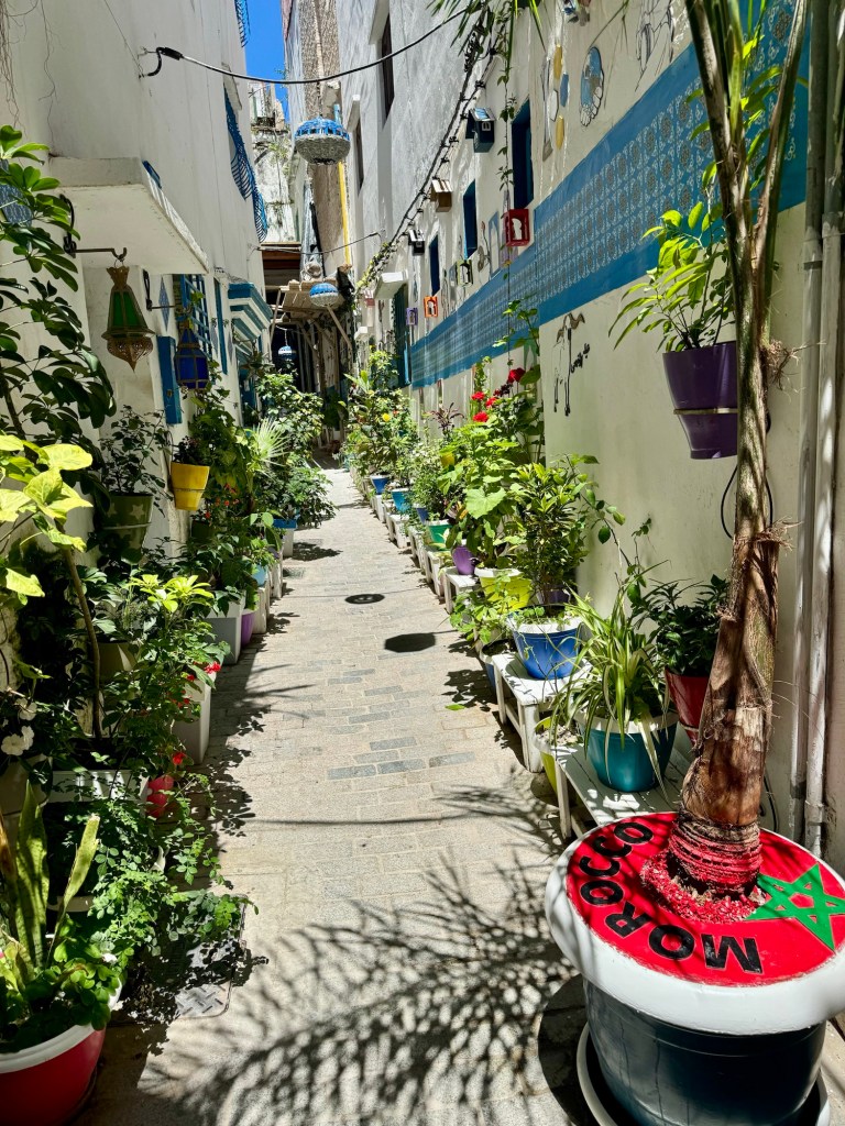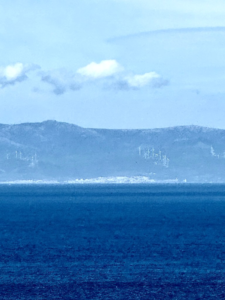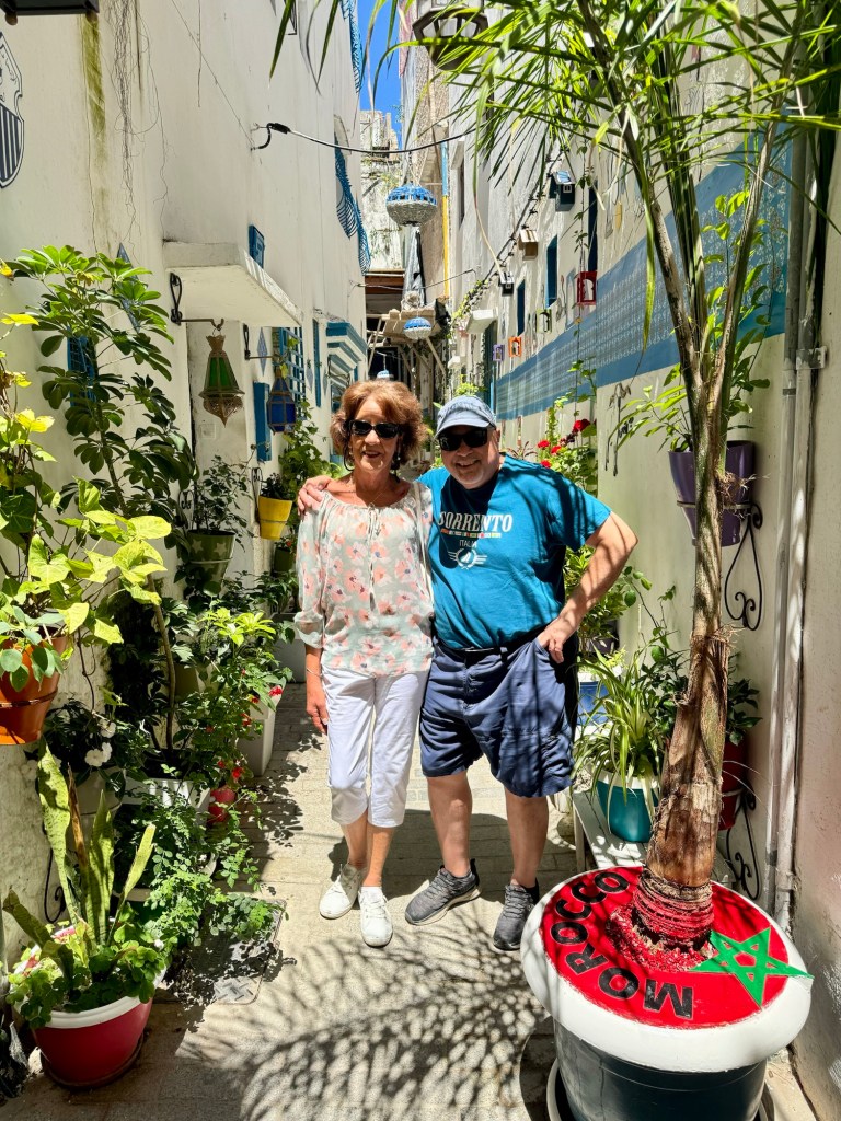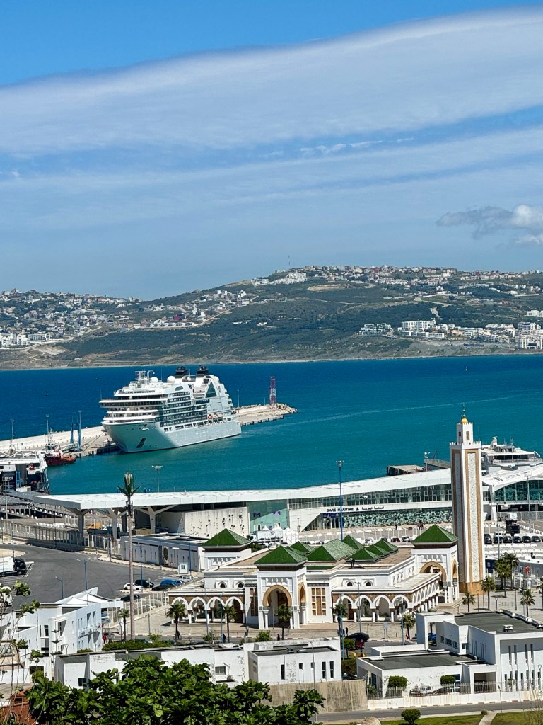 Hercules Cave!AirBnB that Daniel Craig (James Bond) Stayed at!Pretty Side Alley!Us in the Pretty Side Alley!Cool Door!Another Cool Door!Inlaid Wood Ceiling!Cool Courtyard!Looking over to Tarifa, Spain!The Seabourn Ovation in Tangier!One of the many Mosques!Look Who Was on our Balcony!