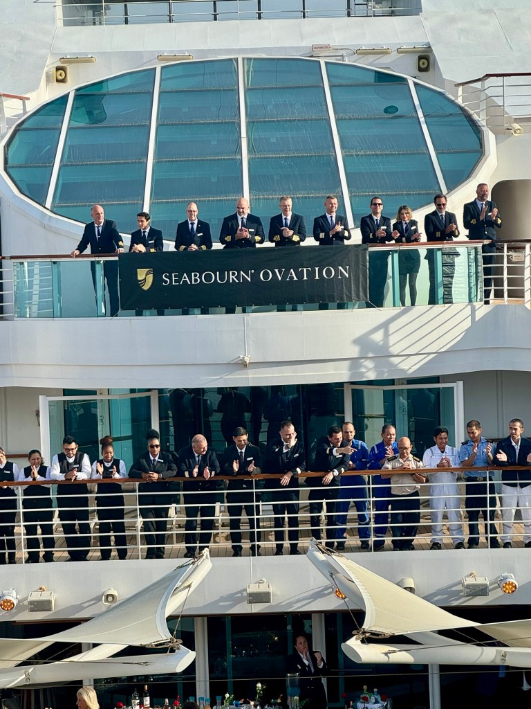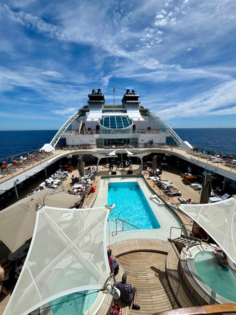 After that they had a salute to the ship officers and staff at poolside. For many people this is their last night and they’ll be getting off the ship tomorrow. We’re one of the lucky ones staying on for the next voyage. We’ve now completed the Canary Islands and Morocco portion of the trip and will be doing Northern Europe now, which they’re calling the Seafarer’s Route. Should be fun!