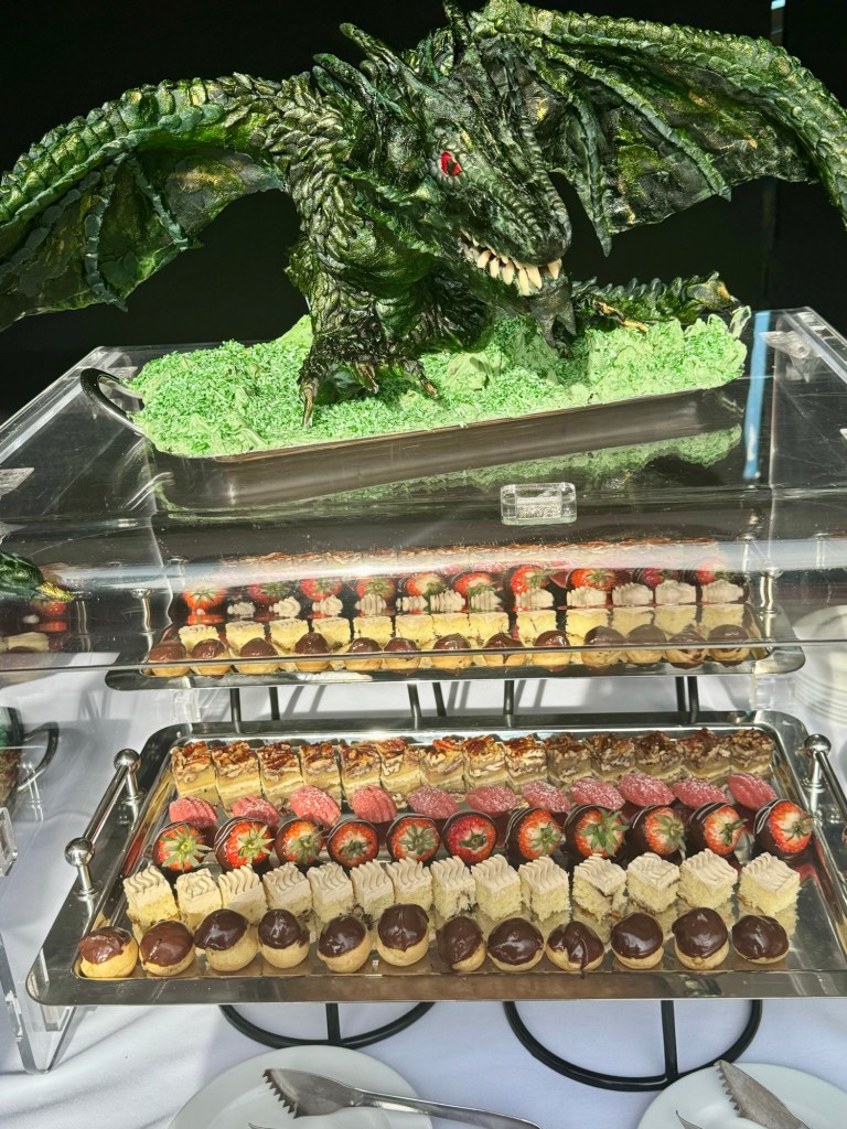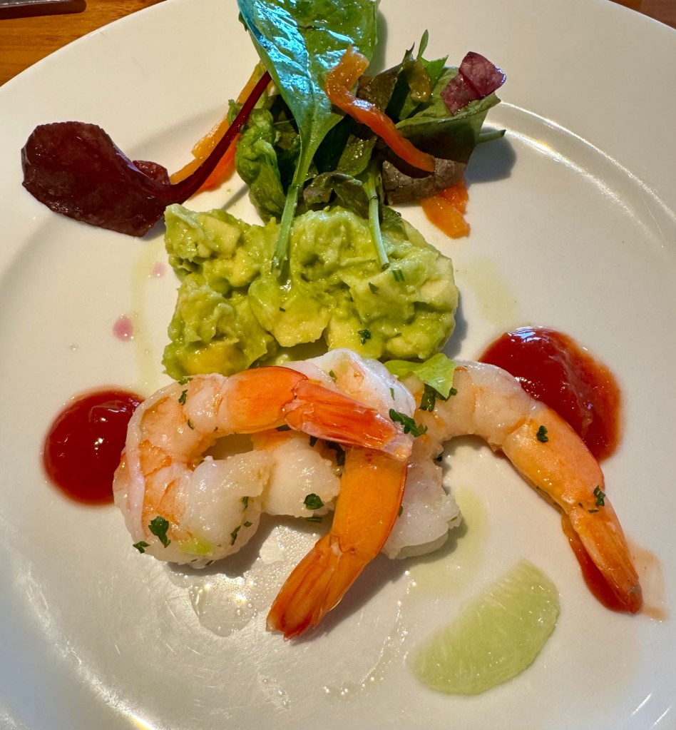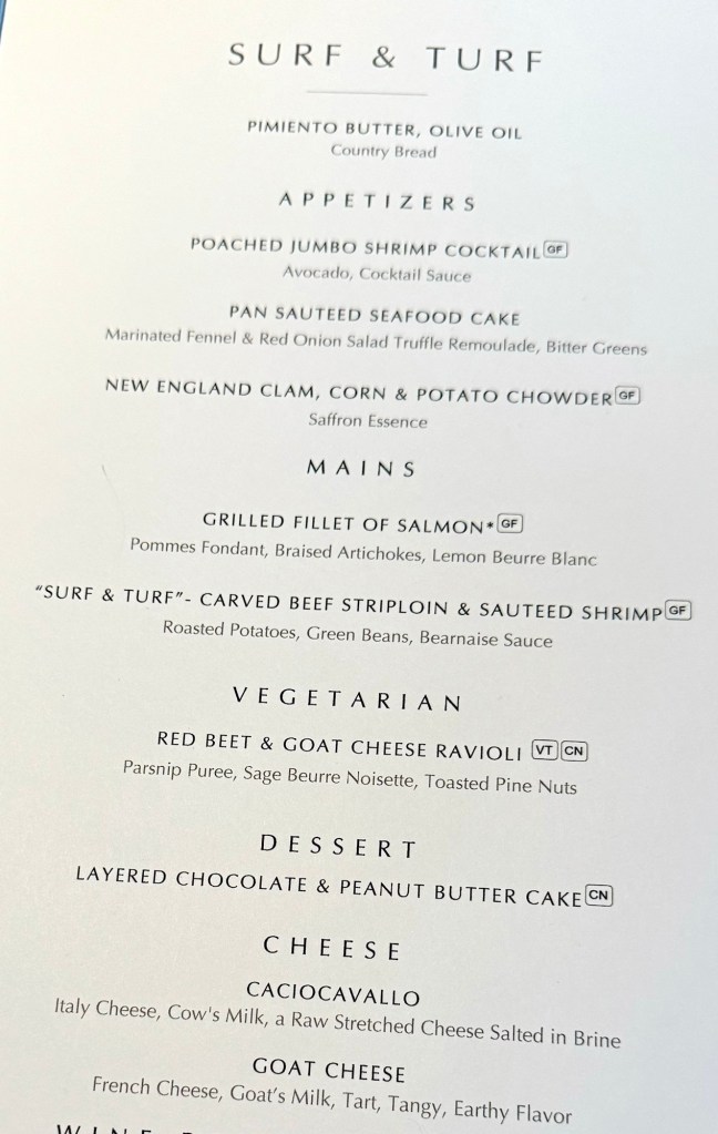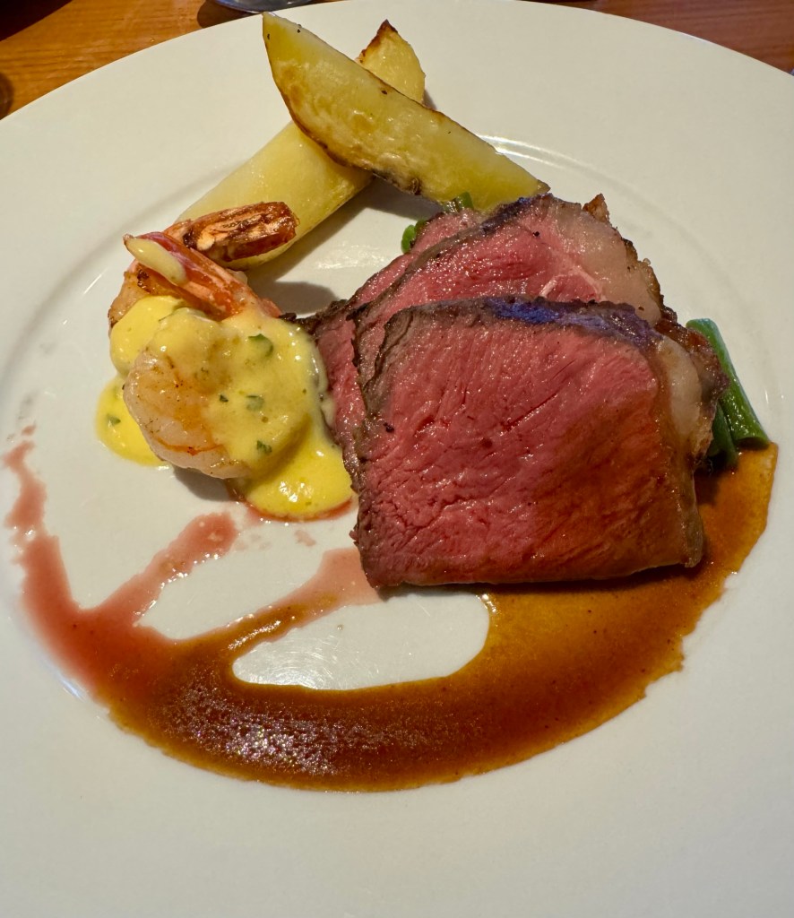 We ate dinner at the Collenade (casual restaurant) tonight since it was “surf and turf” (of course!). It was very good and allowed us to get done in time for the early show since they weren’t doing a late show.