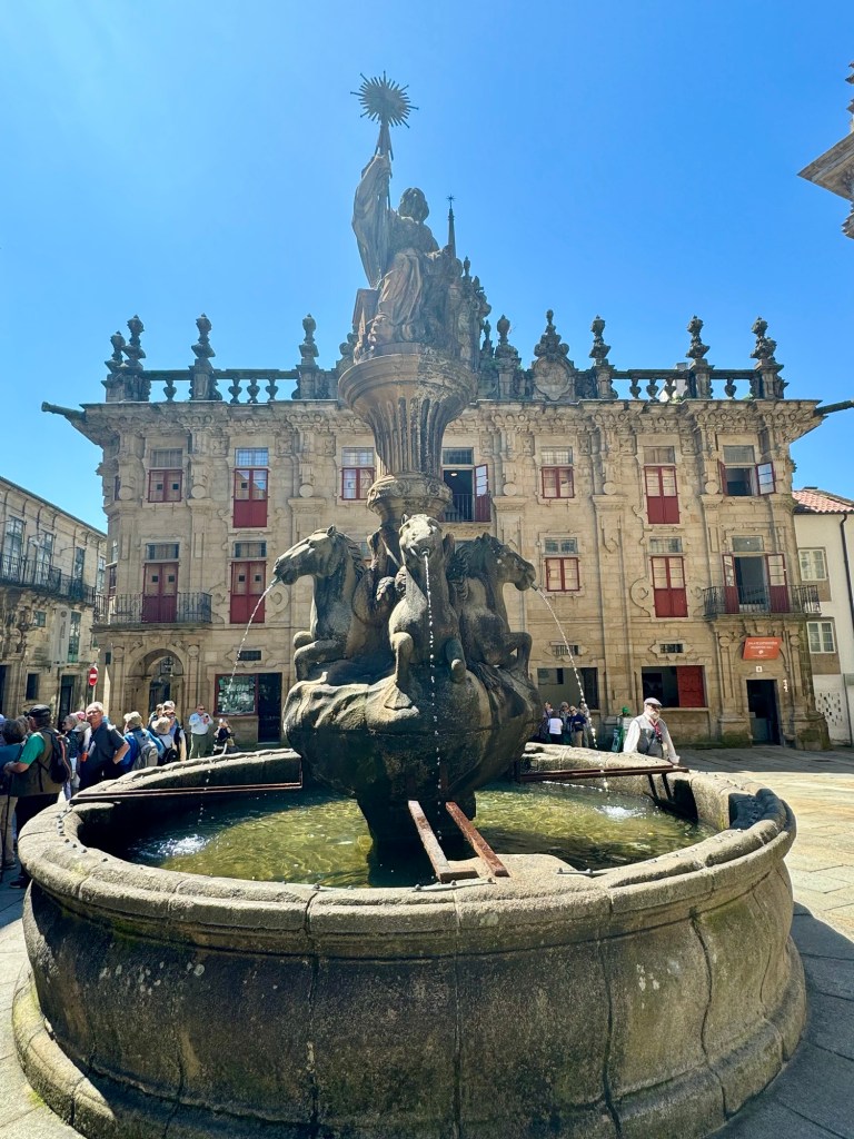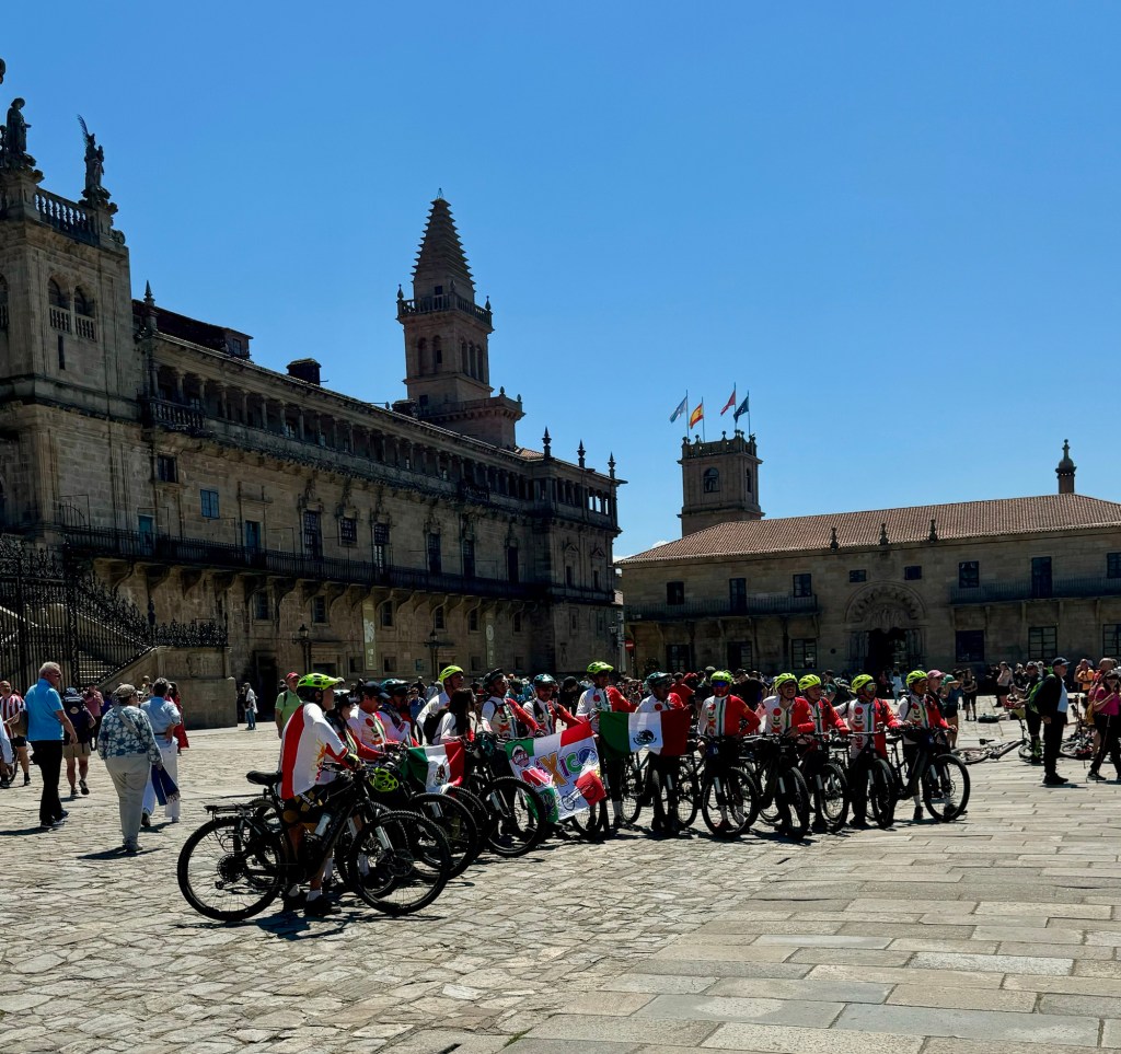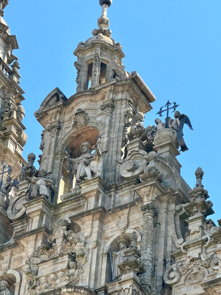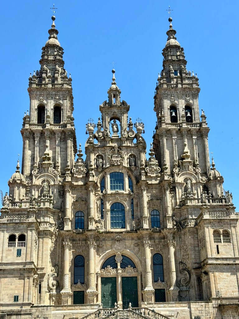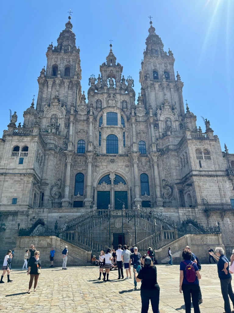 We had a tour guide that was with us on the hour drive from Ferrol to Santiago explaining all the history. She also took us around the outside of the church and showed us all the buildings around the main square. One of the coolest things was seeing all the people who finished their walk all hugging and congratulating each other for this huge accomplishment. There were also large groups of walkers and bicyclists (yes you can do it by bike but you have to go a longer distance) all taking group pictures in front of the church. So cool!