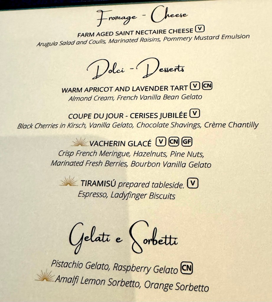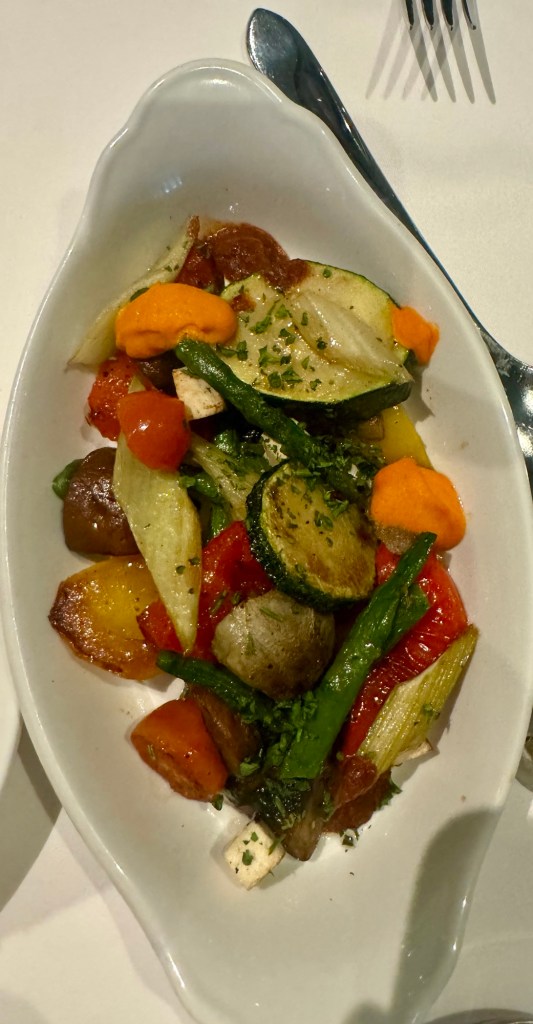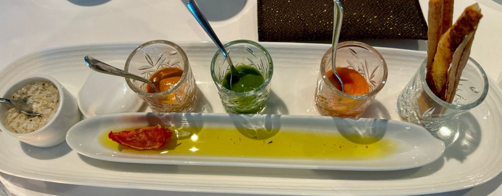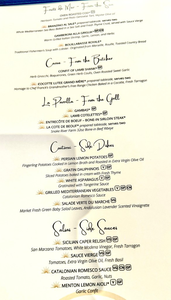 Hi Again All! We had a great night but ate way too much food! We ate in the specialty restaurant Solis and decided to go big. As they say, “go big or go home” and since we’re going home in two days we decided to go BIG!