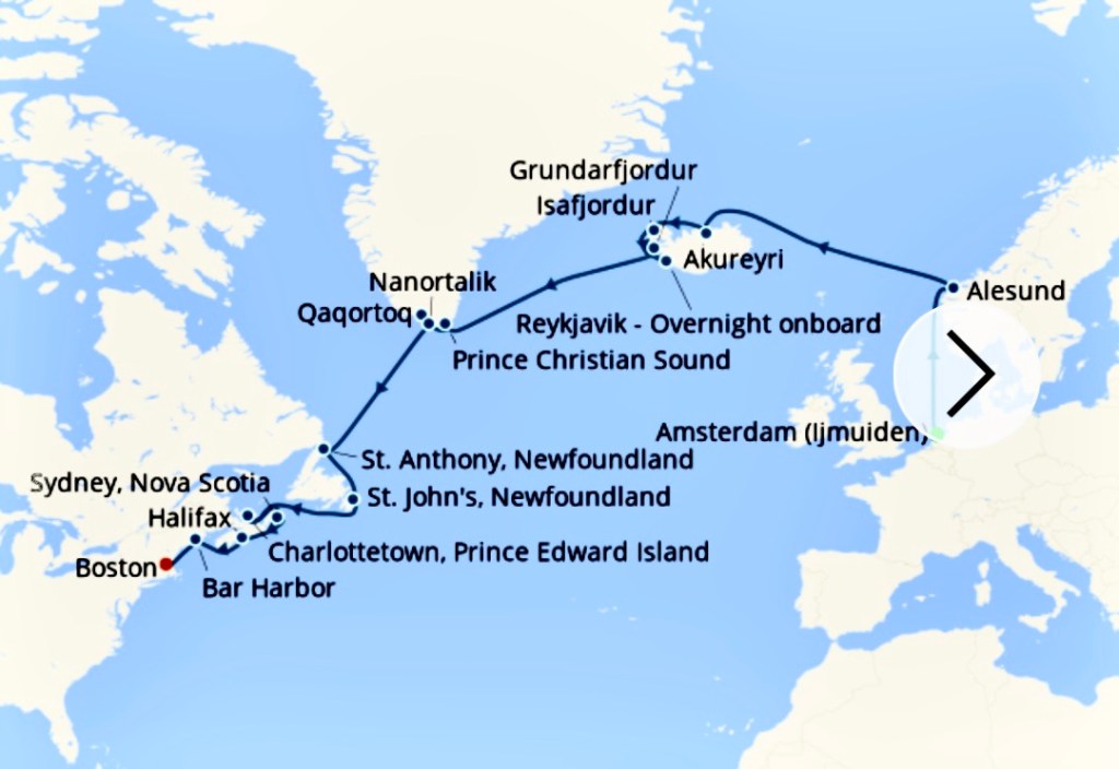 We’ll be following one of the original voyages the Vikings made when they came to the new world over 1,000 years ago! Our 21 night trip goes from Amsterdam to Norway to Iceland to Greenland to Newfoundland to Nova Scotia to Prince Edward Island to Bar Harbor and ends in Boston. What an itinerary! We’ve been to some but not all of these ports. And we’re really excited to see Iceland and Greenland for the first time!