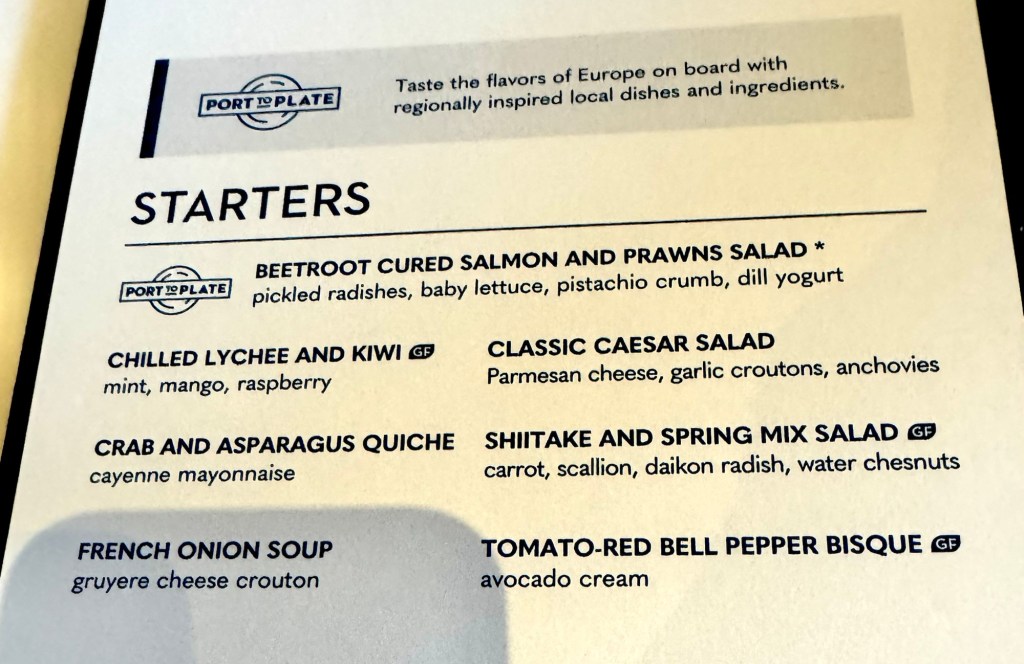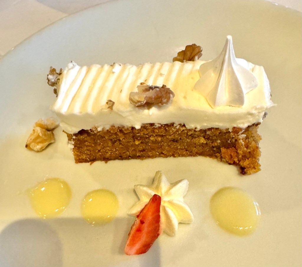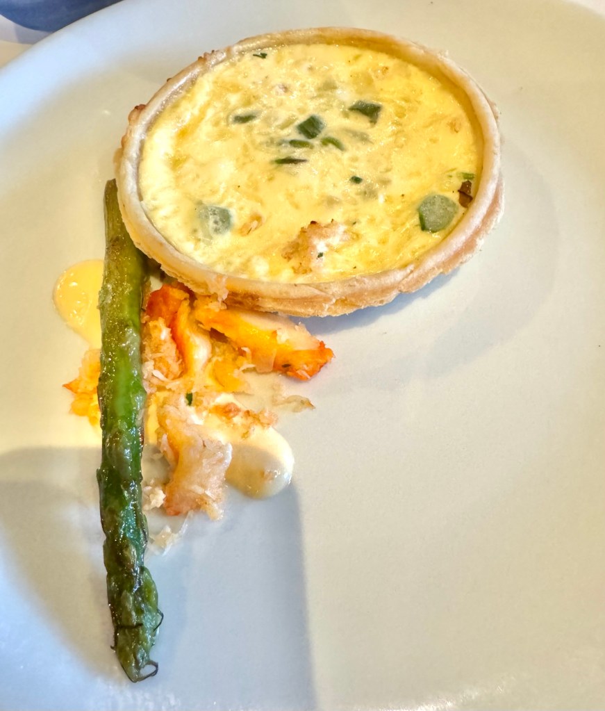 For dinner we both had the Crab and Asparagus Quiche for our first starter then Kathy had the FOS and I had the Salmon and Prawns. For our mains, Kathy had the Flank Steak and I had the Crab Cakes. For dessert Kathy had the Hot Fudge Sundae and I had the Carrot Cake. All was yummy!