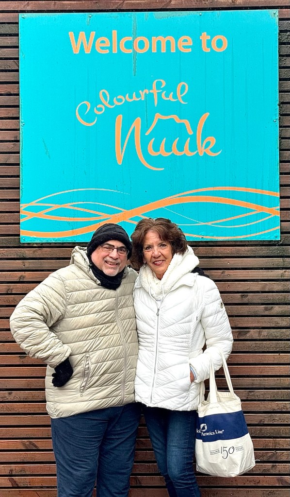 Hi Gang! We had a fun start to Kathy’s birthday today! We went into town in the morning and found some good souvenirs (I’m looking at you grandkids!). This was our first time to Greenland so that was really exciting. It was a little damp and chilly but that didn’t stop us.