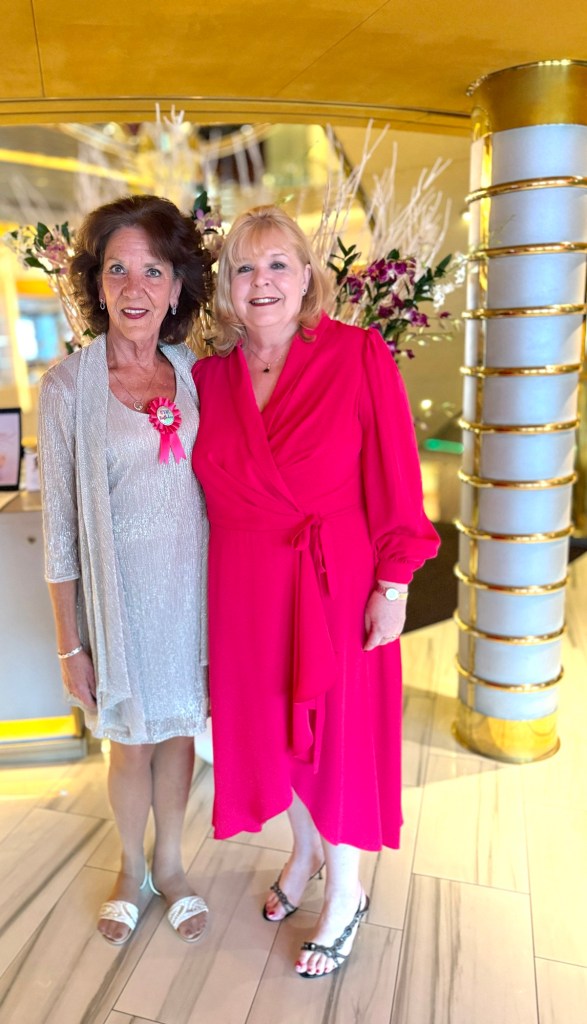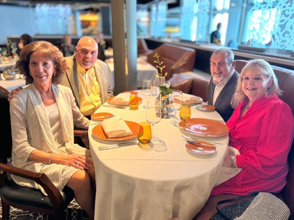 Hi Again Gang! While we had a fantastic morning and afternoon, the evening was even more amazing. The food at the Pinnacle Grill rivaled that of Regent Seven Seas and that’s saying a lot! Since we were going to the Upscale restaurant, we all dressed up nicely. Not bad for some oldies but goodies!