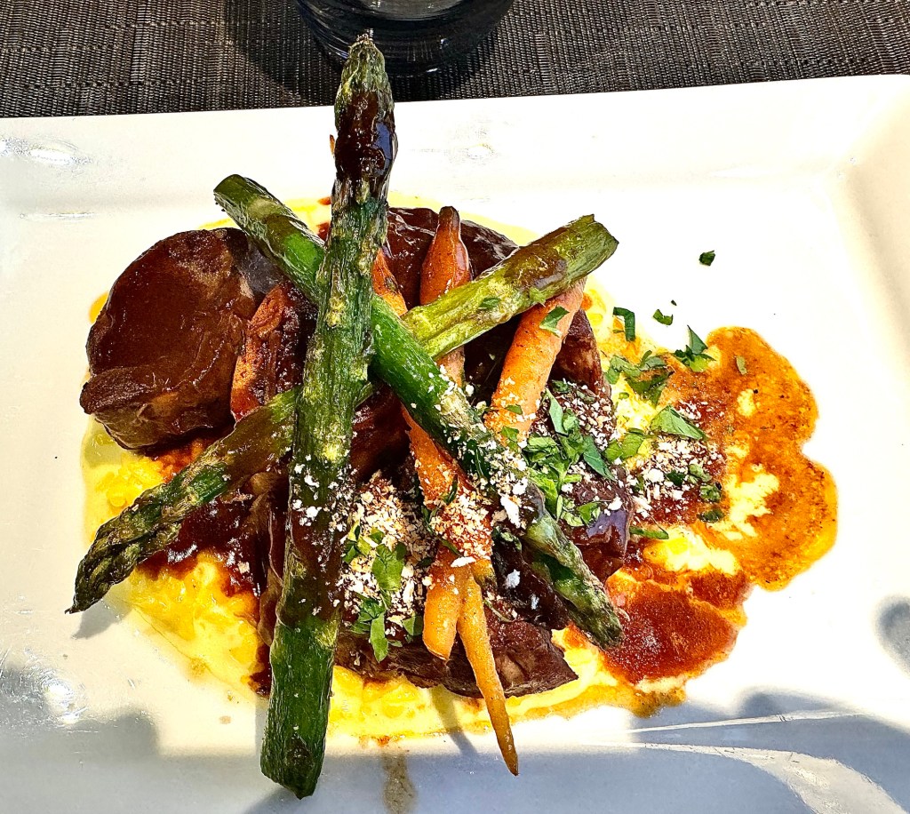 The food was fabulous and the company was even better. Kathy I had the same exact meal. We started off with the Grilled Tiger Shrimp and the Veal and Sage Meatballs for our two appetizers. We both got the Osso buco for our mains and both got Tiramisu for our dessert. We even arranged to have them bring out an anniversary cake and sing to them. It was a really special night!