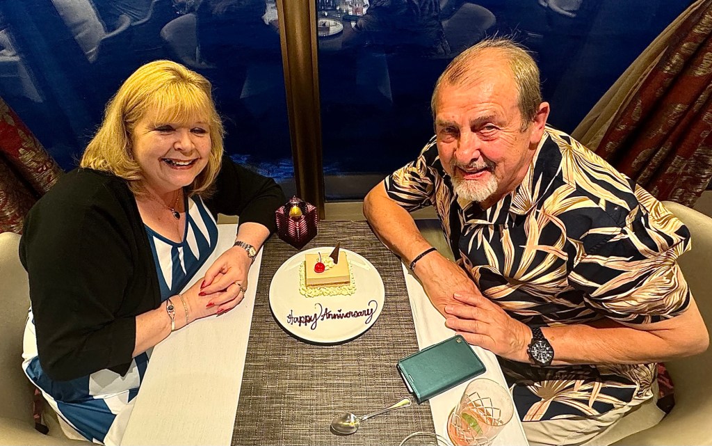 Hi Again Folks! Tonight was an extra special night! We treated Sue and Stuart to the specialty Italian restaurant named Canaletto for their 50th wedding anniversary! They look way too young to be married 50 years! Maybe they got married when they were 5??? Lol.